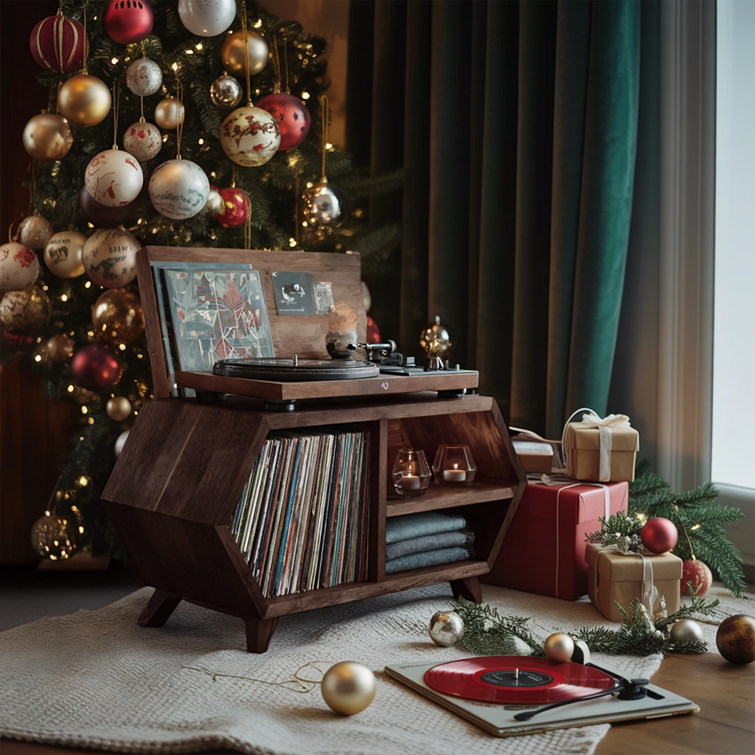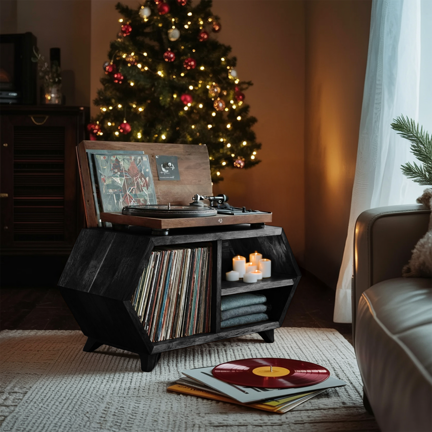 With its clean, minimalist profile and natural finish, this record stand complements both traditional and modern interiors. The spacious design provides room for vinyls, books, or decorative accents, creating an elegant balance of form and function. Its handcrafted details make it a standout centerpiece that enhances your holiday décor with warmth and character.