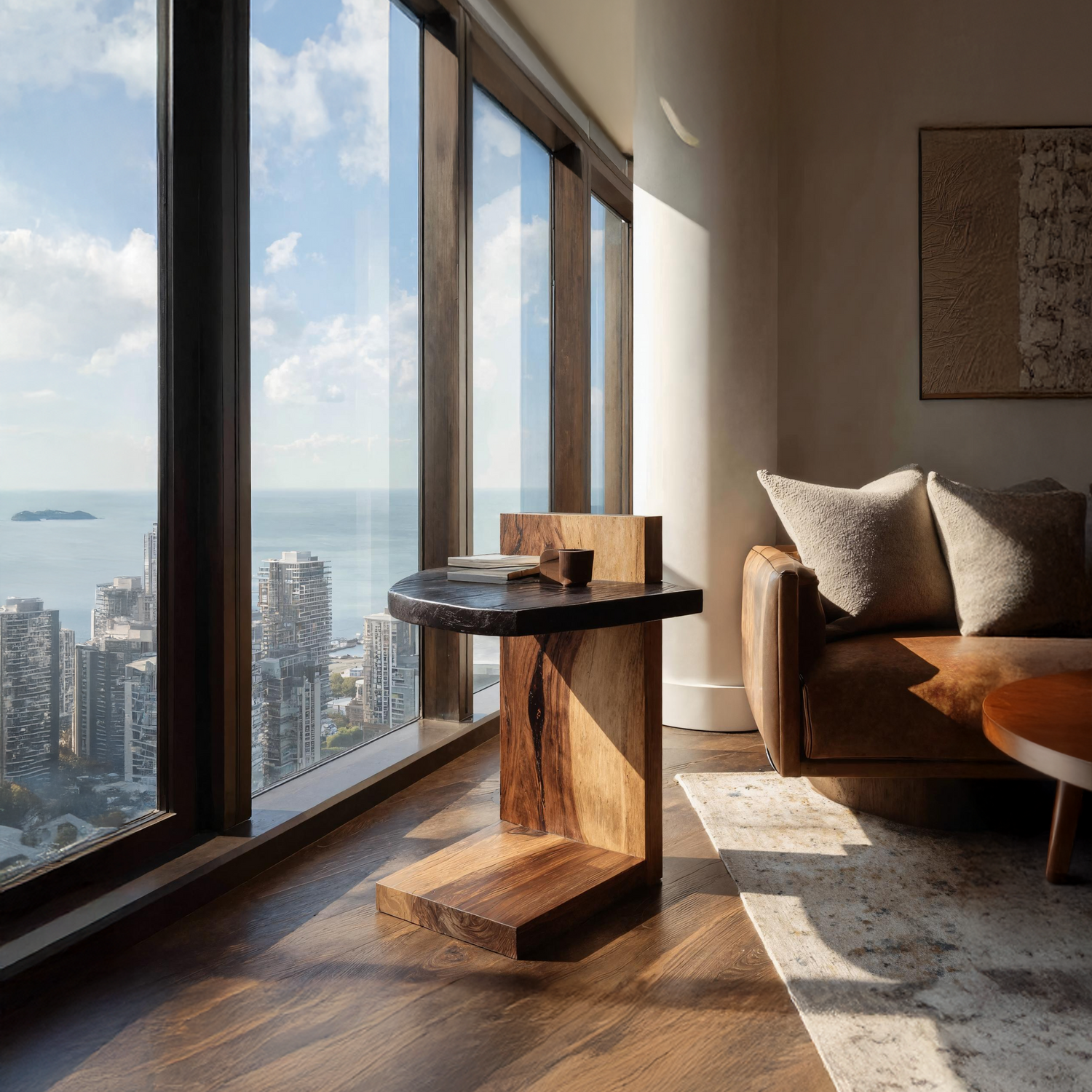 Each table is individually made by skilled artisans, highlighting the natural grain and organic flow of solid wood. Subtle variations in color and form are celebrated, ensuring no two pieces are ever the same.