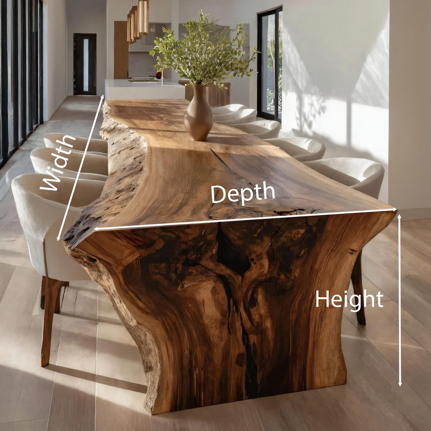 Celebrate natural beauty and functional design with our Handmade Live Edge Dining Table For Dining Room, crafted to bring sculptural presence and timeless warmth into your home. Its bold form transforms everyday dining into an elevated experience.