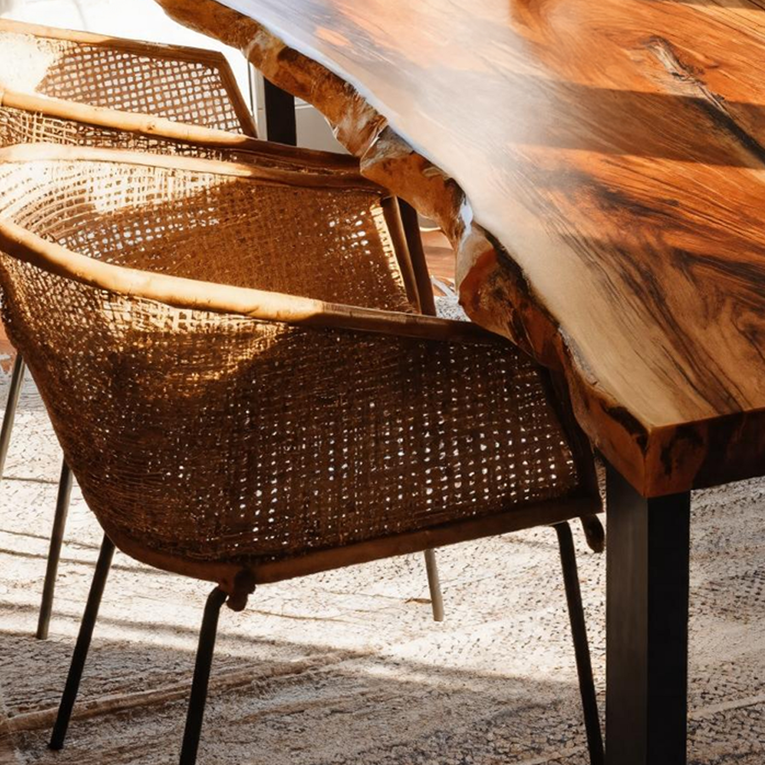 Crafted from kiln-dried hardwood, each tabletop showcases unique grain patterns, tonal variations, and natural markings. The table offers both durability and tactile warmth. Matching solid wood legs further reinforce structural integrity and visual harmony.