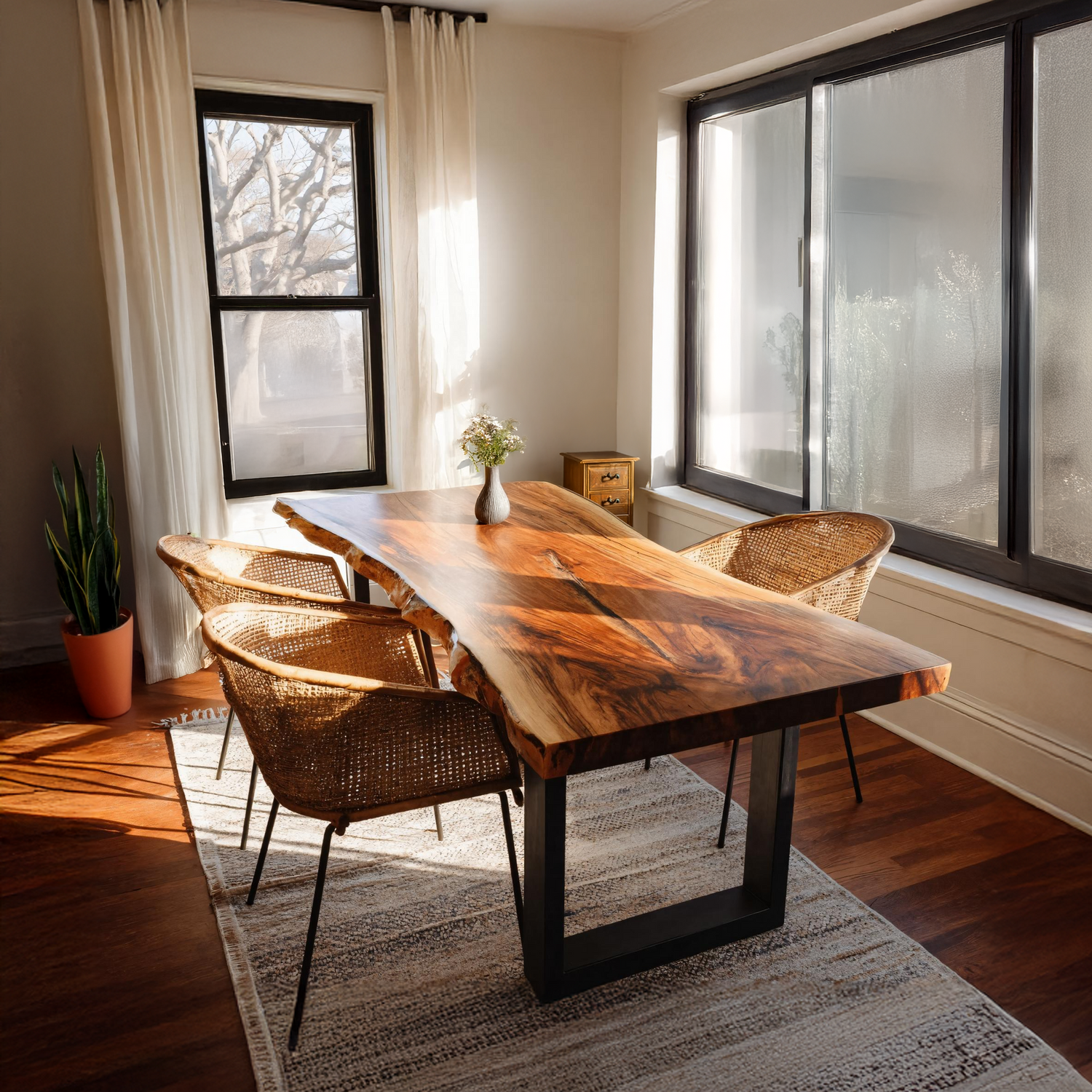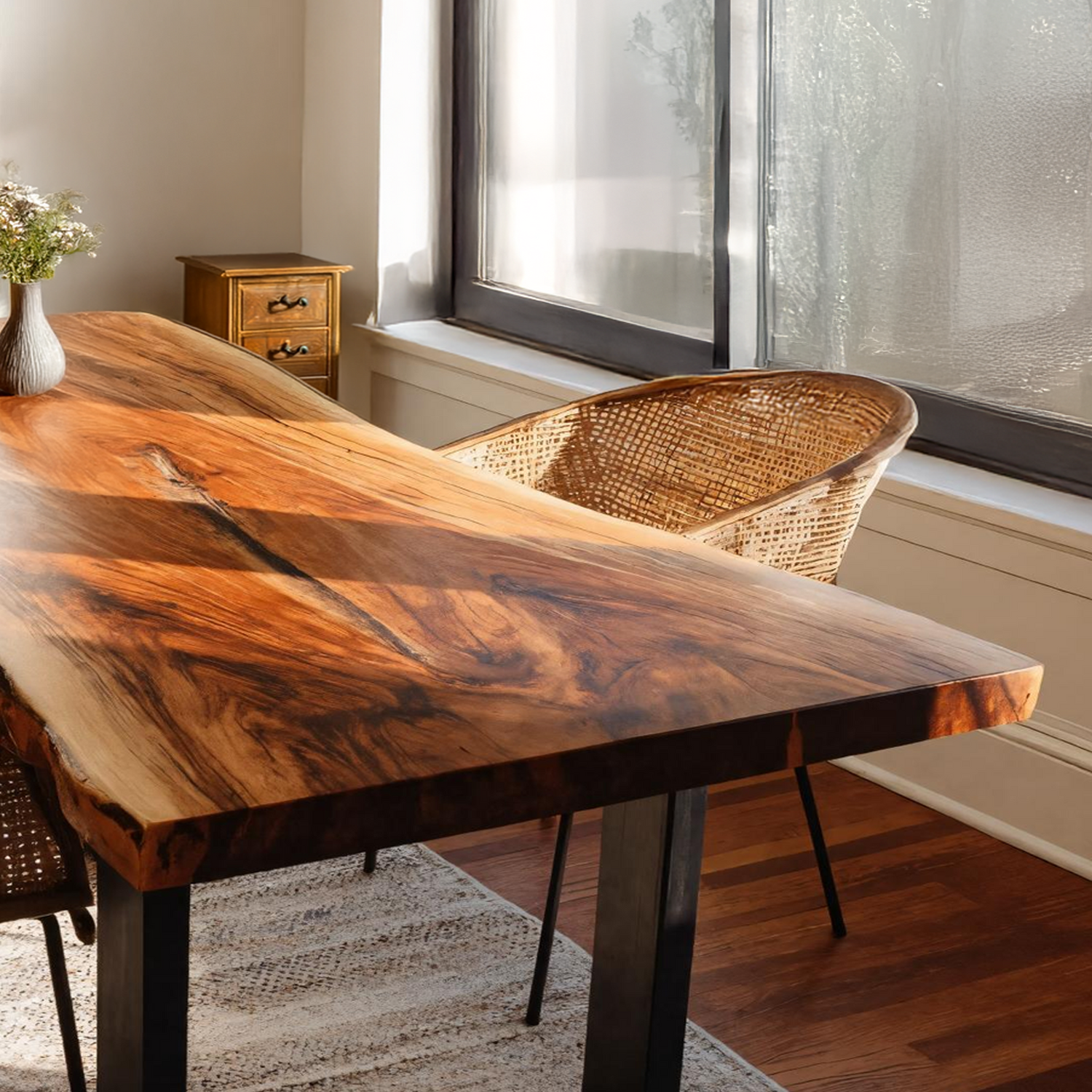 Add natural charm to your space with the Kitchen Decor Farmhouse Live Edge Dining Table Rustic Look, a design that blends organic live edge details with the warm, weathered character of farmhouse style. It creates an inviting focal point for family meals and everyday kitchen gatherings.