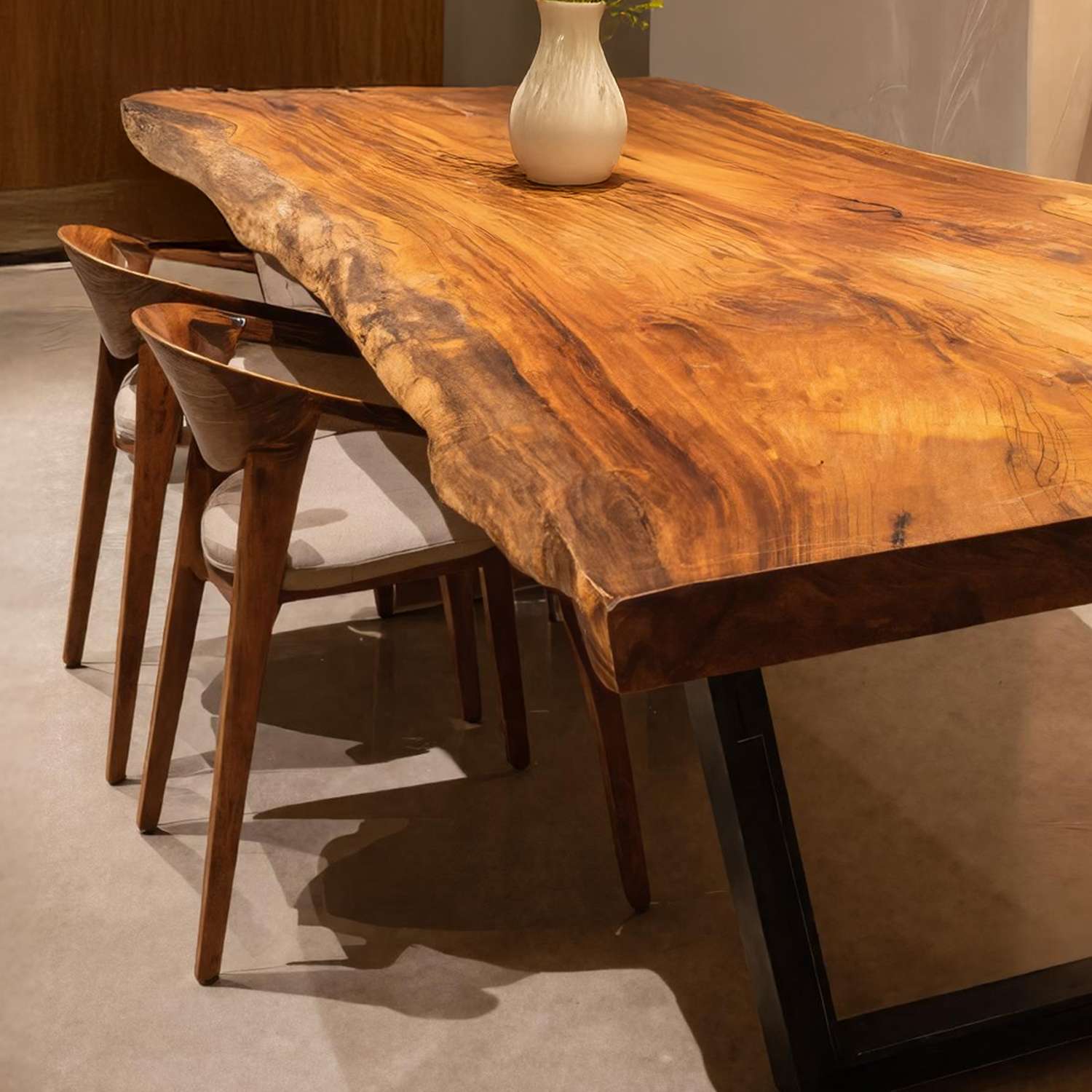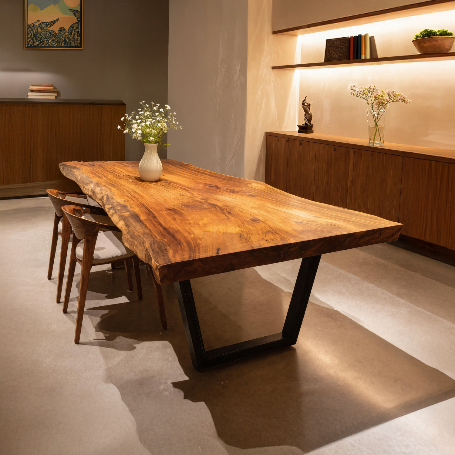 Elevate your kitchen space with the Kitchen Decor Modern Live Edge Dining Table Sleek Grain, a design that blends contemporary clean lines with the organic character of a live edge surface. Its smooth grain pattern and refined silhouette create a stylish, inviting focal point for everyday meals and modern gatherings.