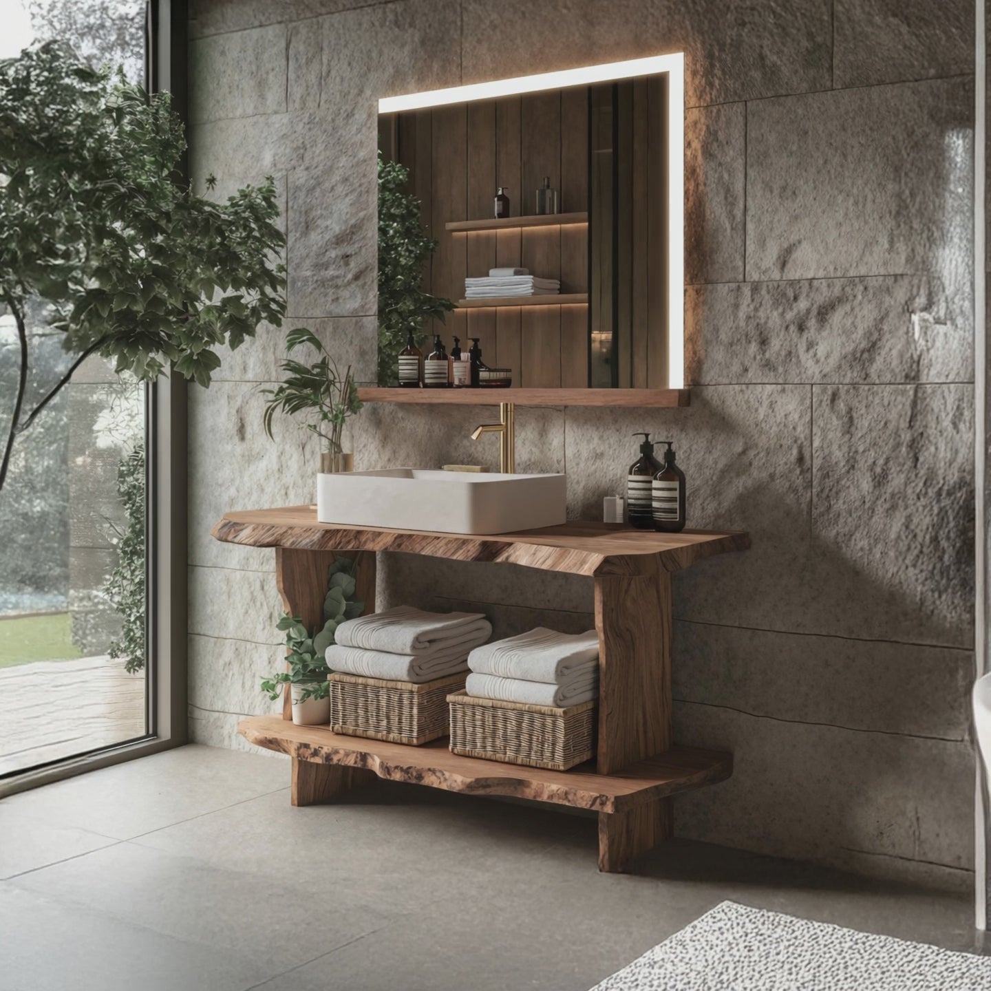 - Unique Live Edge Finish: Each piece retains the raw, organic shape of the wood, ensuring no two vanities are identical.