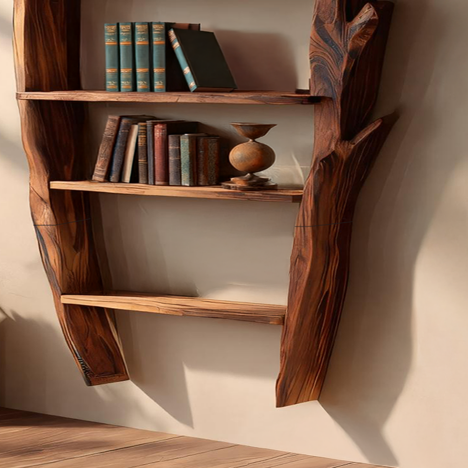 Made entirely from solid wood, each shelf highlights authentic wood grain patterns and subtle tonal variations. These natural characteristics bring warmth and depth to your space while ensuring long-term stability and everyday usability.