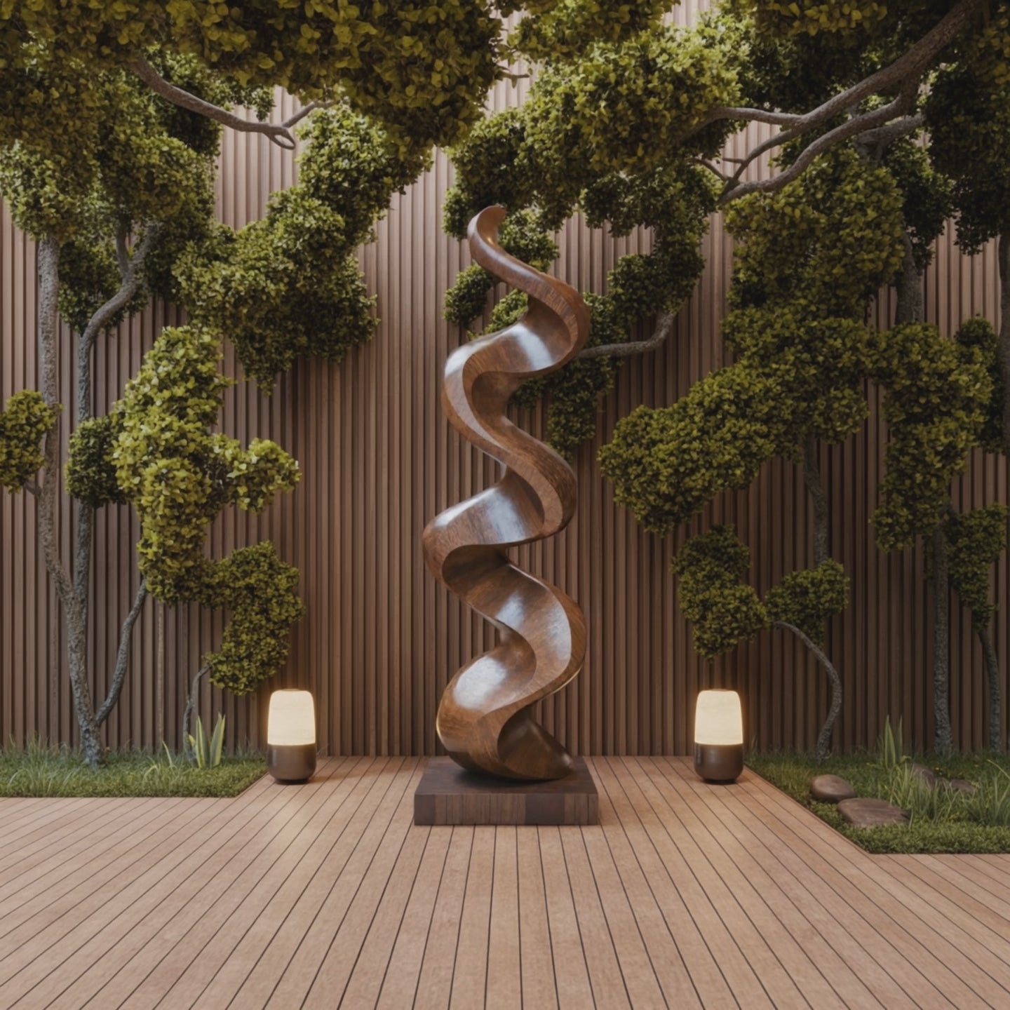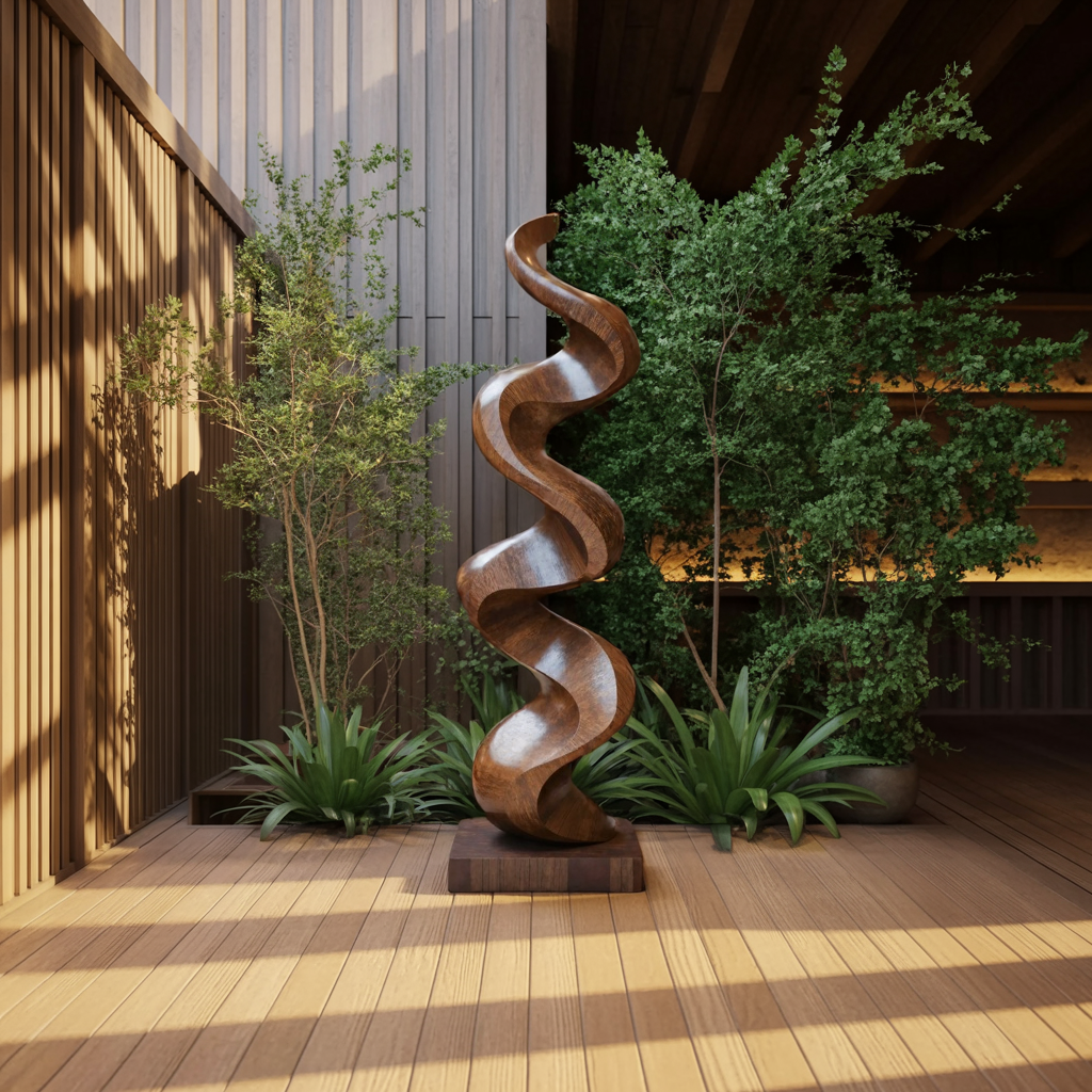 Inspired by the flowing movement of flames and the organic forms found in nature, this abstract wooden sculpture is more than just décor - it’s a visual statement. Its fluid, twisting curves evoke motion and harmony, creating a sense of energy that subtly transforms any space. Whether used as a focal point or an accent piece, it brings life and depth to minimalist, modern, and contemporary interiors.