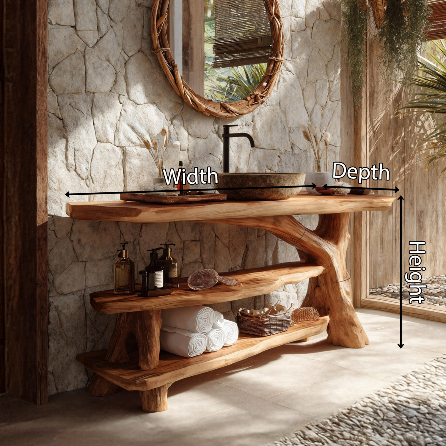 Revitalize your bathroom with our Handmade Wooden Bathroom Vanity, a perfect fusion of rustic charm and modern elegance. This vanity is thoughtfully designed to enhance both the style and functionality of your bathroom, making it a standout piece in any modern home.