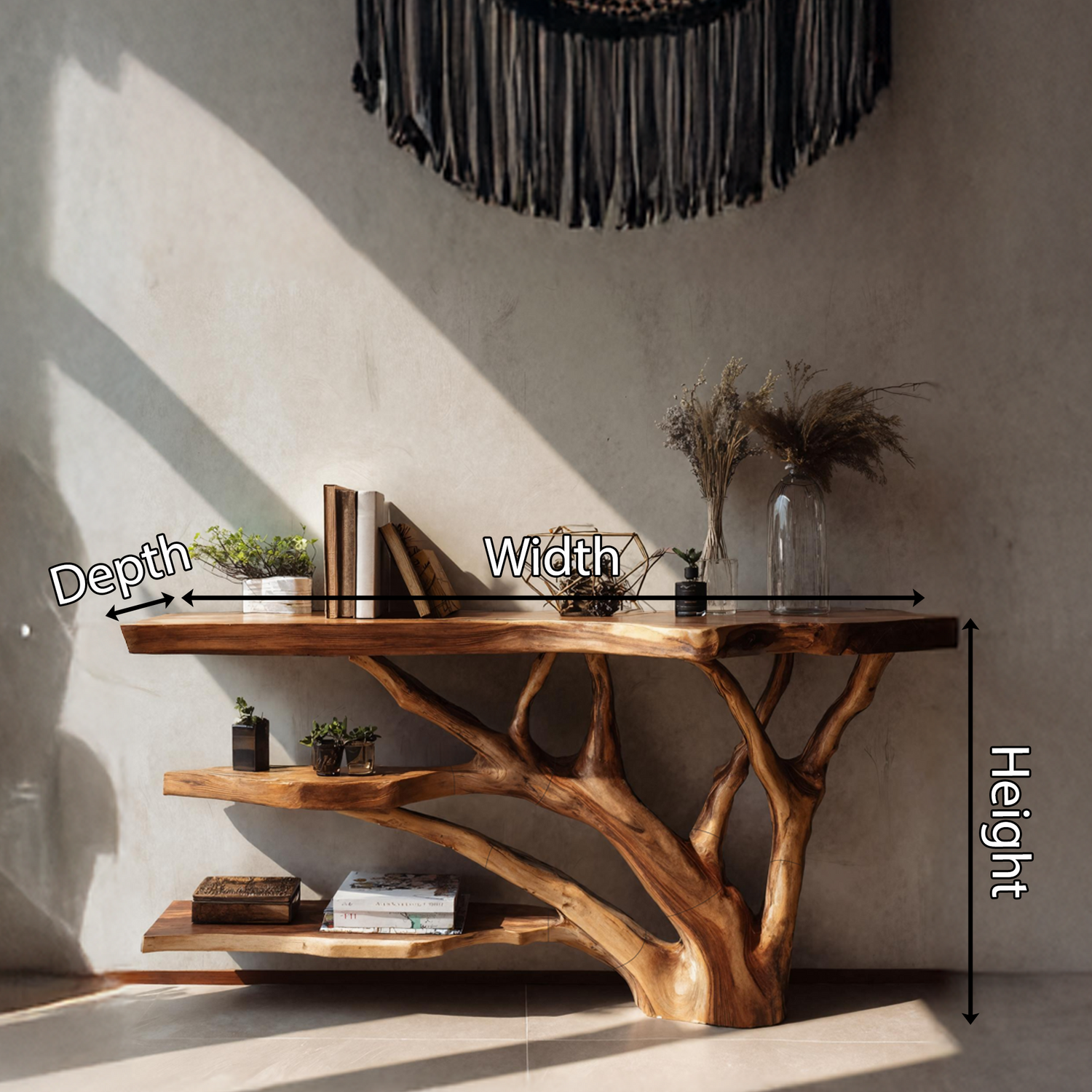 Made entirely from solid wood, every console table reflects the unique story of the material it’s built from. No two pieces are ever identical—each features distinct knots, color variations, and grain patterns that showcase the raw beauty of nature. This handcrafted quality ensures durability and authenticity, elevating it beyond a simple piece of furniture into a work of natural art.