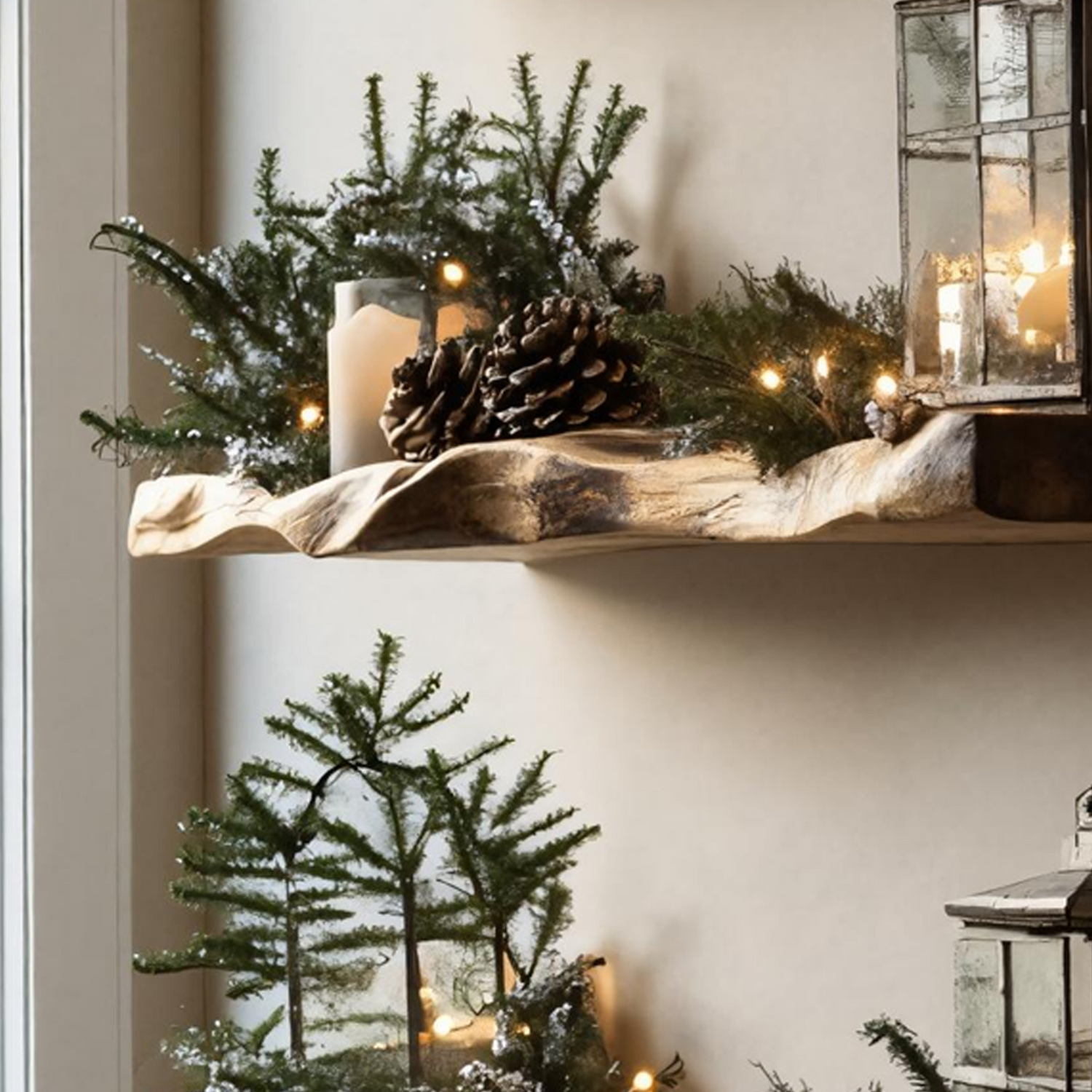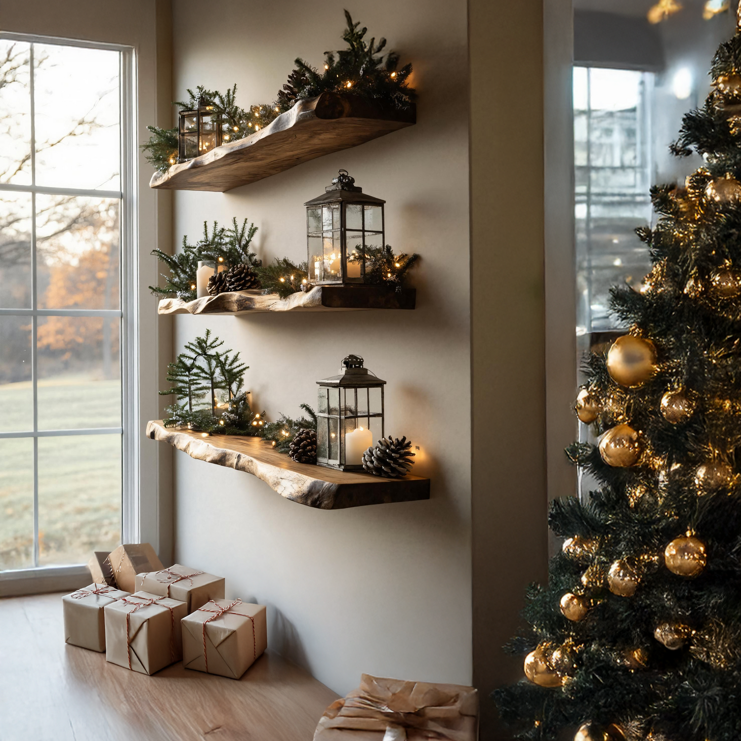 Add natural elegance to your bedroom with the Mid Century Live Edge Floating Shelf For Holiday Bedroom Decoration. Expertly crafted from solid wood, this shelf features a unique live edge that highlights the beauty of natural grain. Perfect for displaying candles, garlands, or festive décor, it combines mid century sophistication with cozy holiday warmth to elevate your bedroom ambiance.