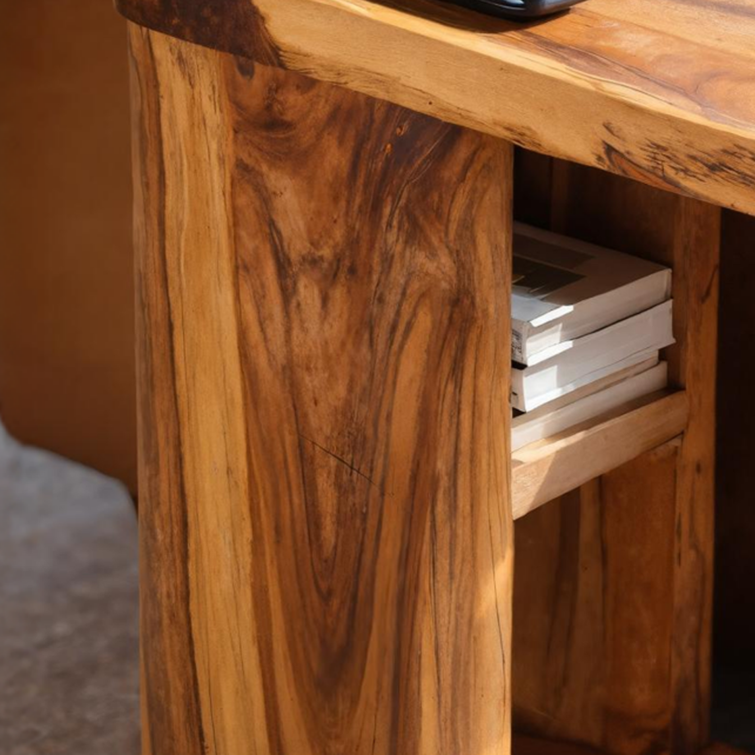 Each table is individually handmade from natural Monkeypod wood, chosen for its rich grain and sustainable qualities. The warm tones, organic textures, and variations in every slab ensure each piece is truly one of a kind.