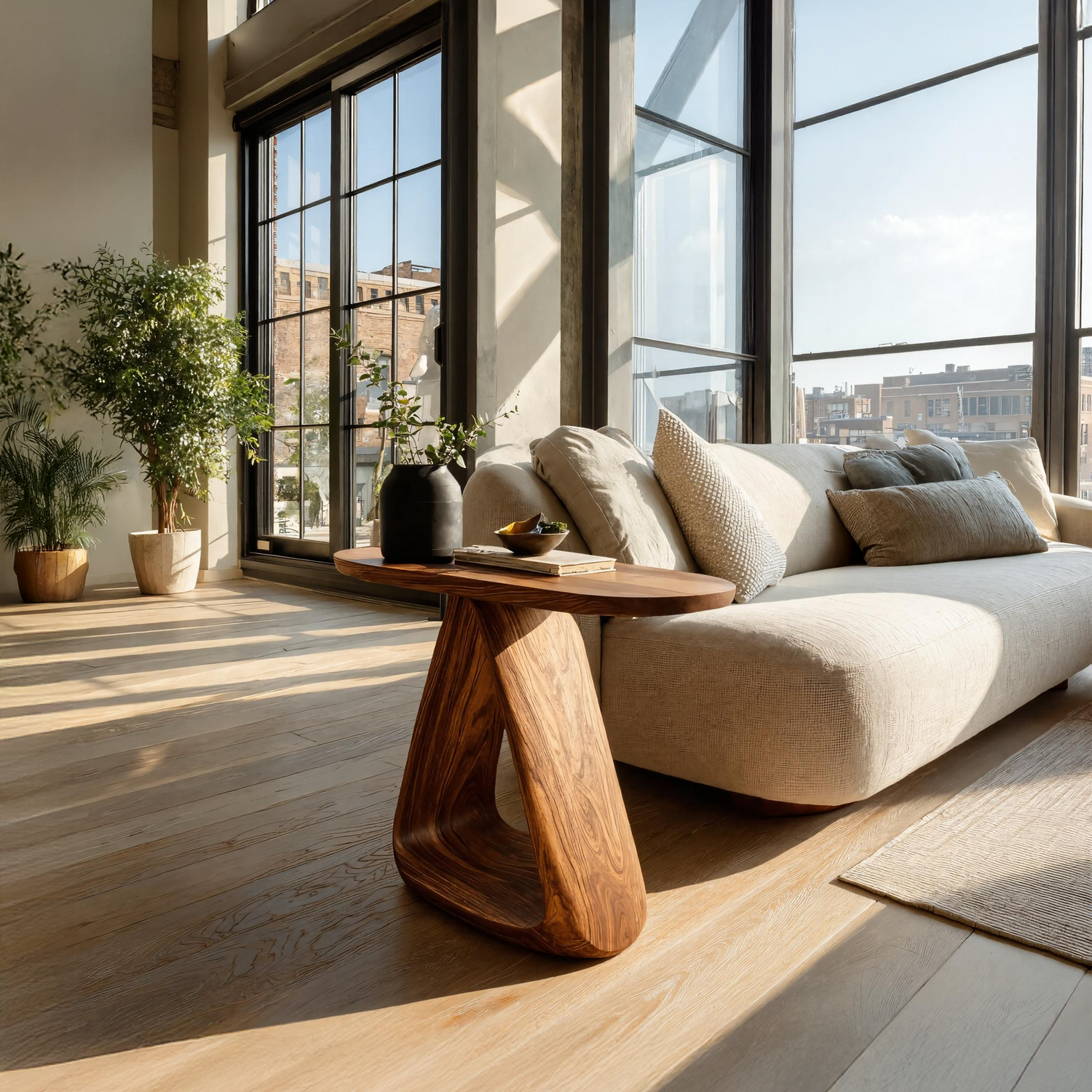Each table is individually made by skilled artisans, highlighting the natural grain and organic flow of solid wood. Subtle variations in color and form are celebrated, ensuring no two pieces are ever the same.