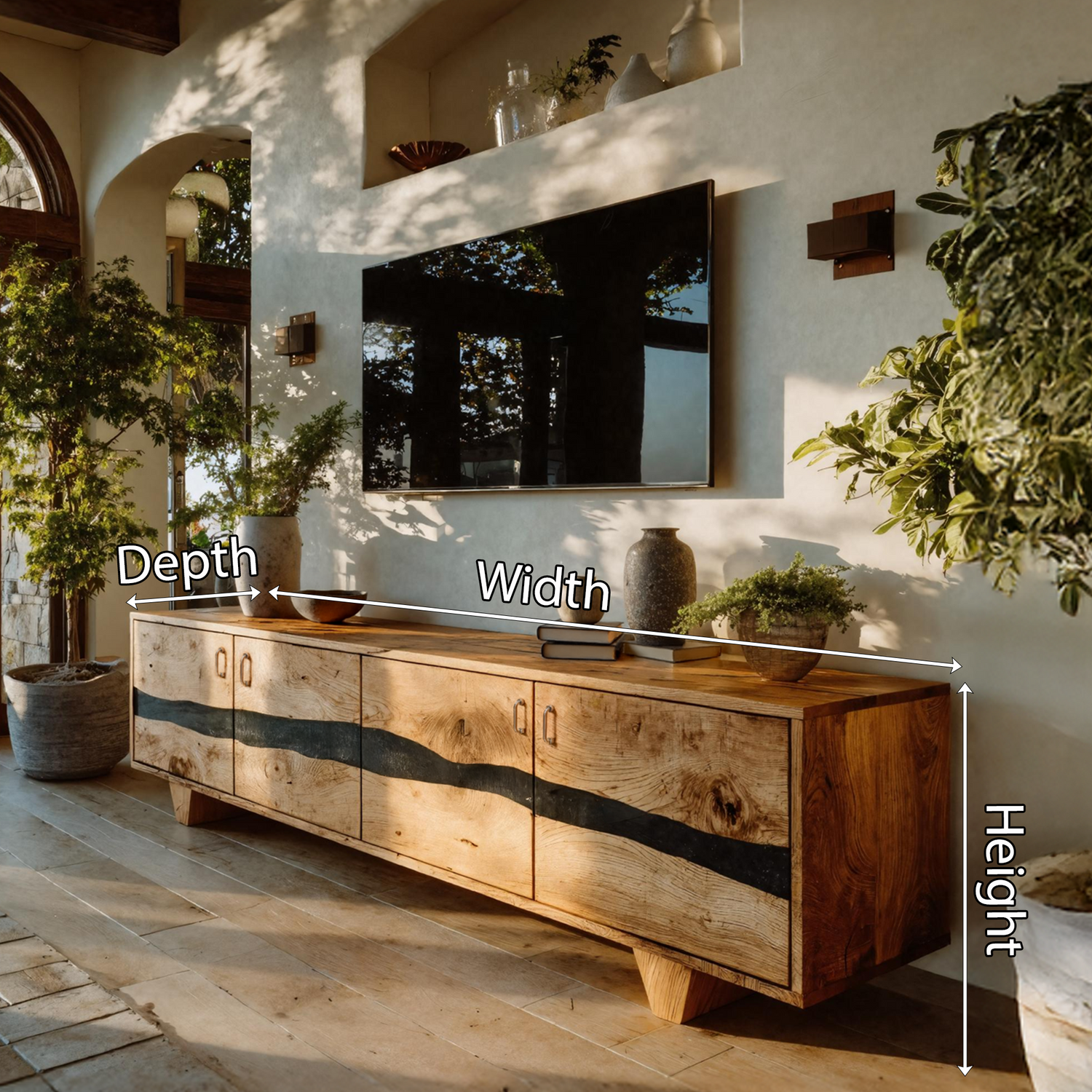 Enhance your home with the Mid Century Live Edge TV Cabinet For Living Room Design, a distinctive piece that blends organic character with classic mid-century lines. Featuring a natural live-edge profile and a clean, functional structure, this cabinet adds warmth, visual interest, and practical storage to elevate your living room décor.