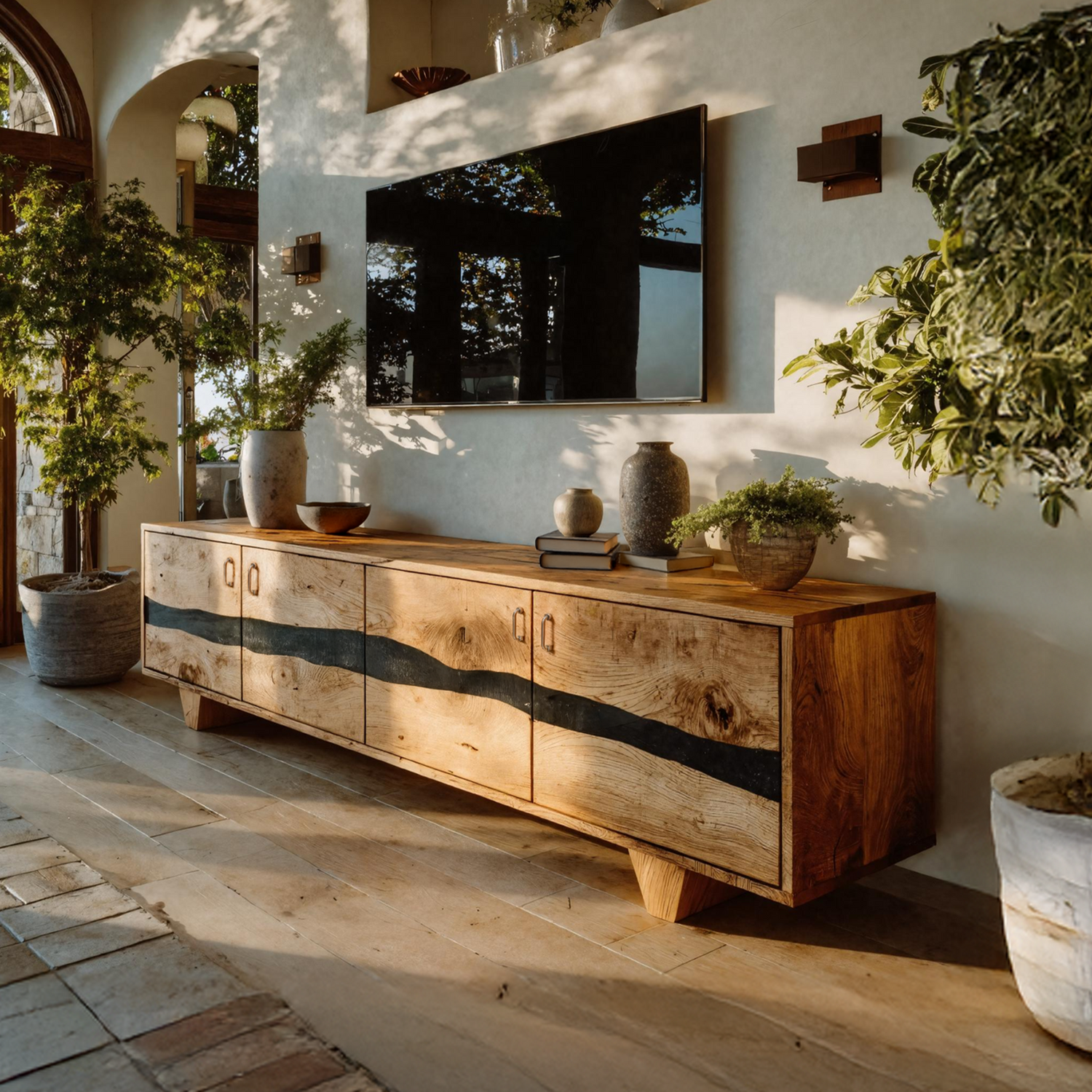 Mid Century Live Edge TV Cabinet For Living Room Design