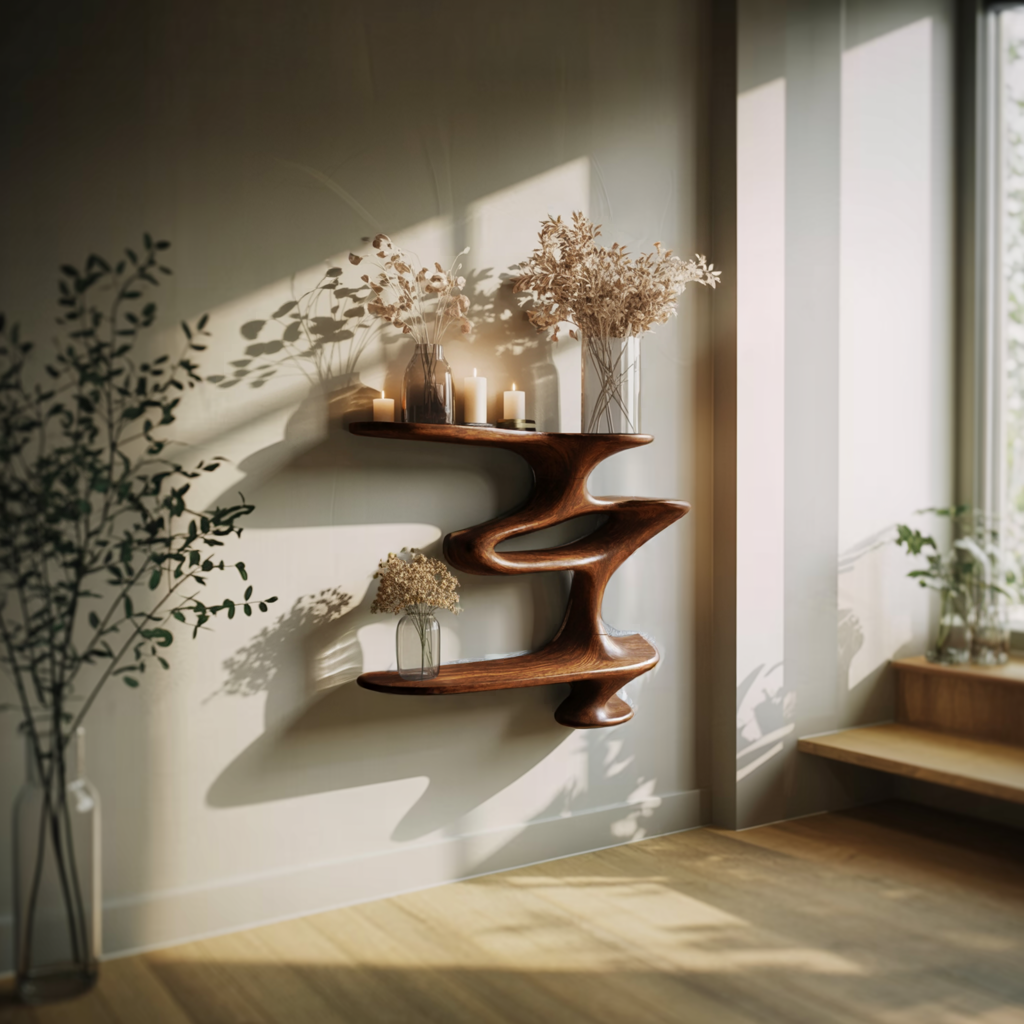 Add natural elegance to your space with this handcrafted piece made from solid wood. Featuring rich grain, organic edges, and a clean silhouette, the Mid Century Live Edge Wall Mount Shelf Living Room brings timeless style and practical charm to any interior.