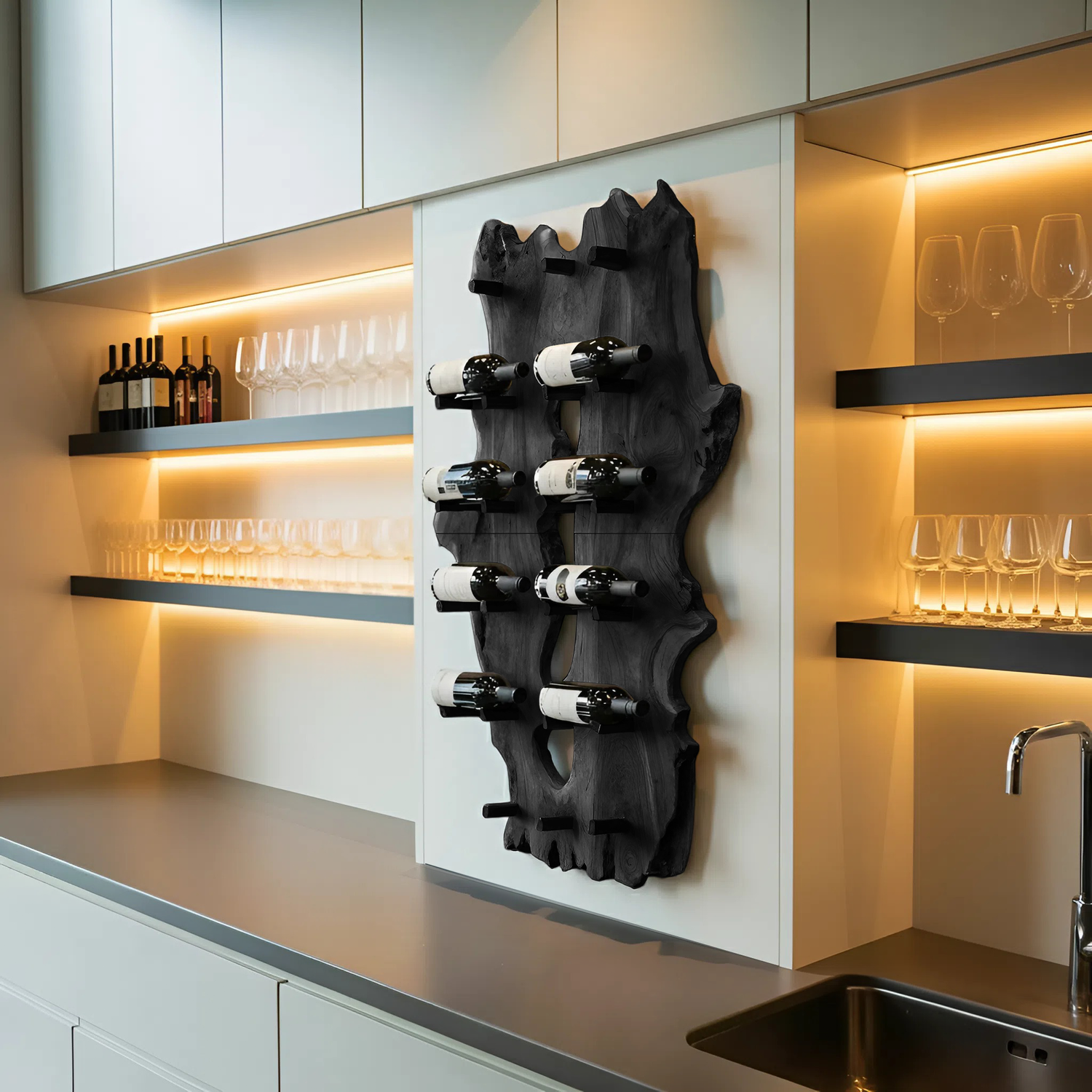 Designed as a wall-mounted wine holder, this piece combines decorative appeal with practical storage. Its stable structure securely supports a single bottle while creating a clean visual accent on your wall.