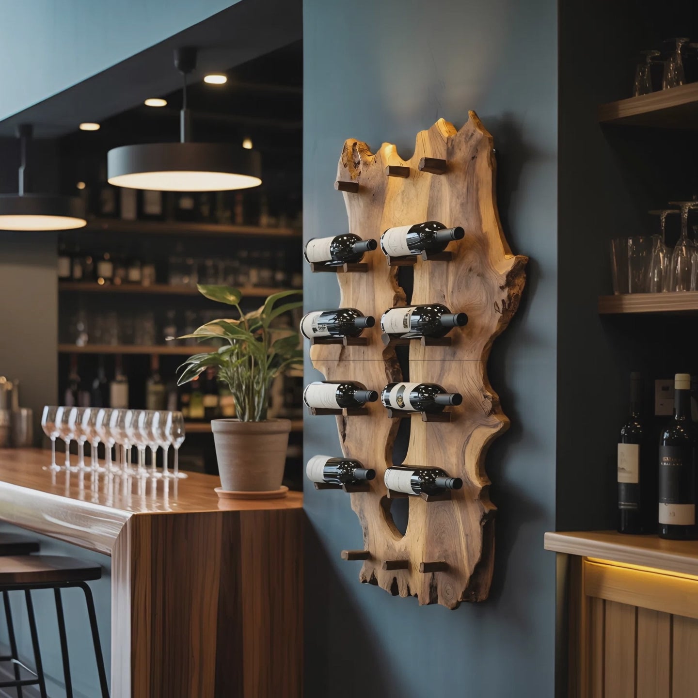 Mid Century Live Edge Wine Holder For Elegant Entryway Decor