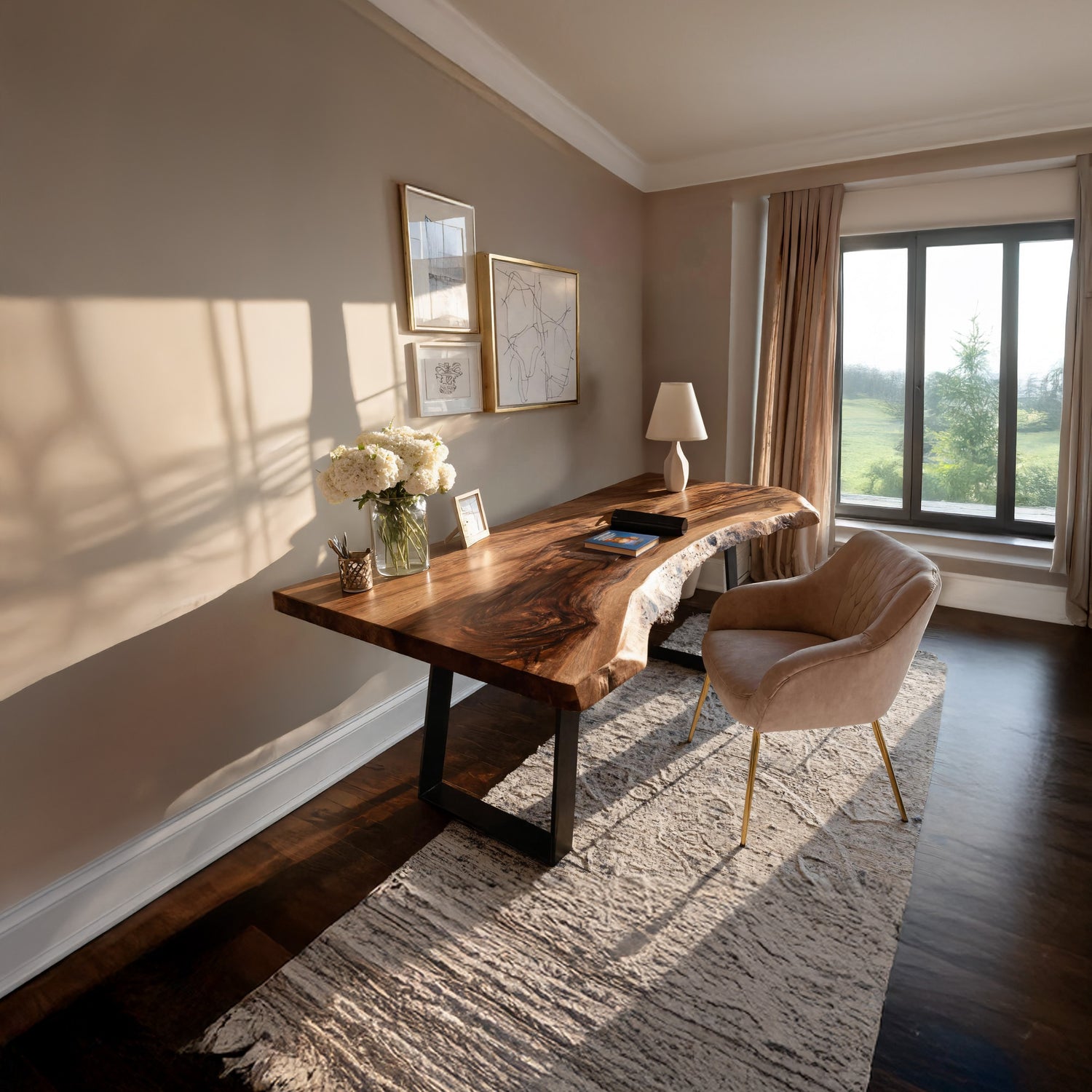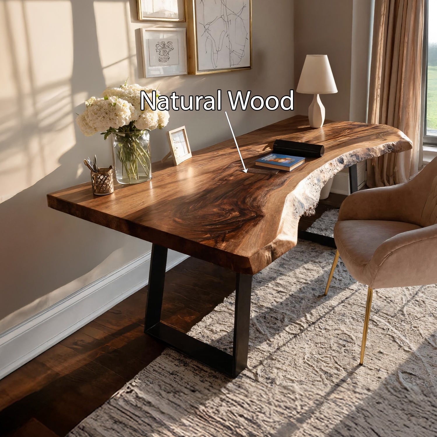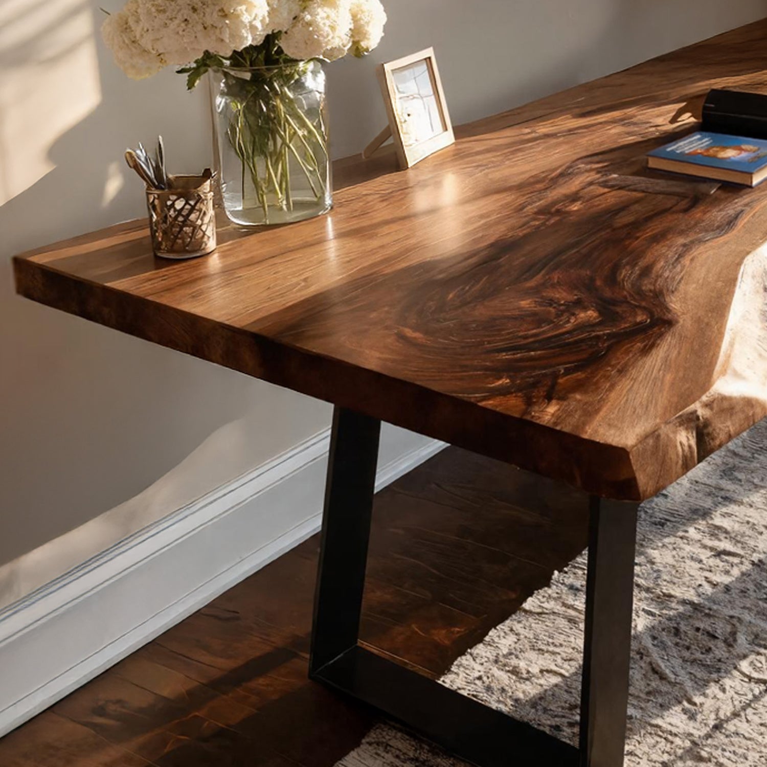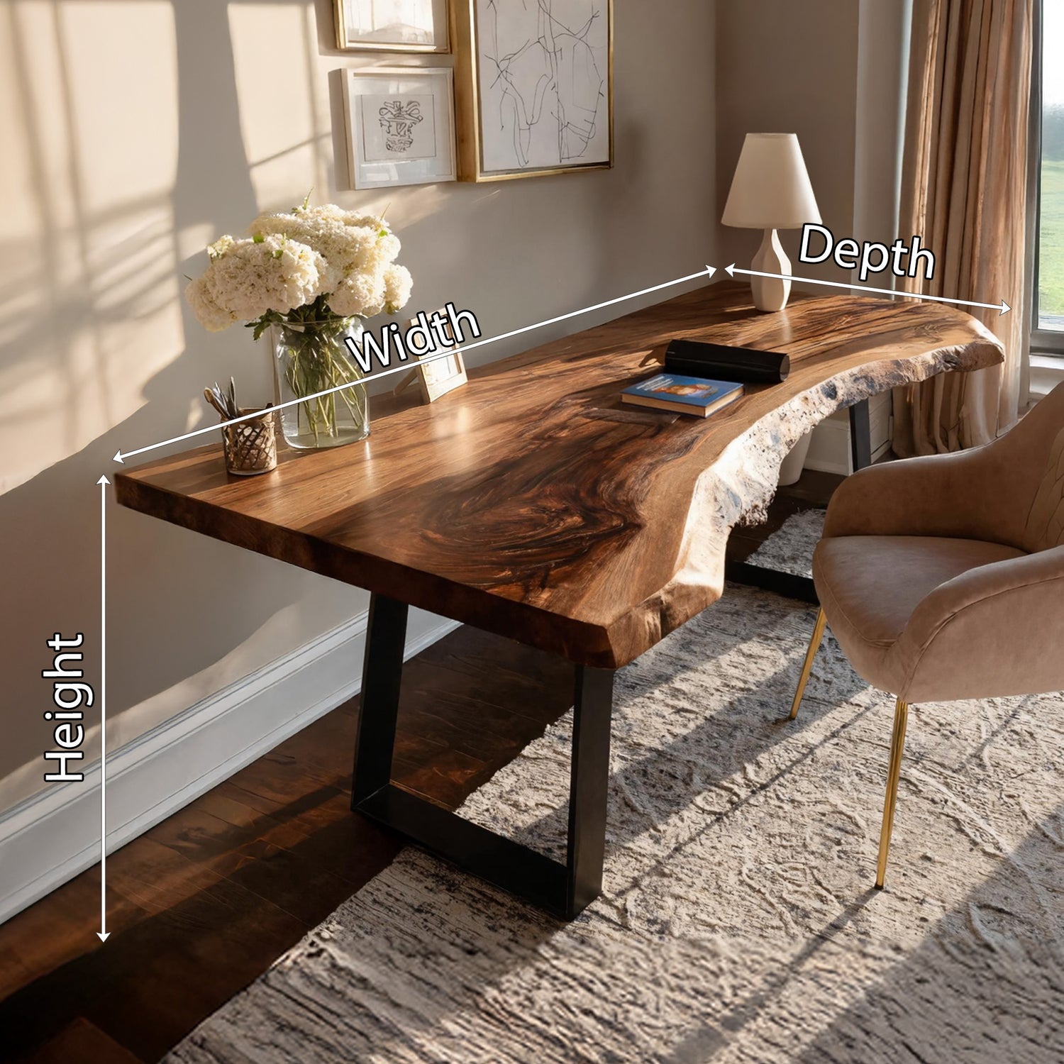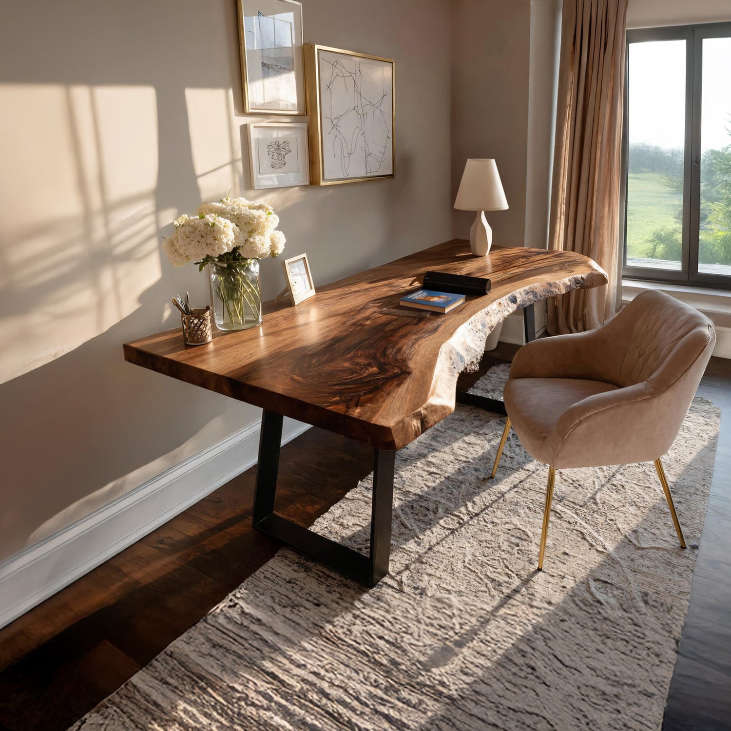 Add timeless character to your space with this Mid Century Live Edge Wood Desk For Home Decor, crafted to highlight the expressive grain and organic contours of natural wood. The flowing live edge brings a raw, sculptural charm, while the mid-century silhouette offers clean lines and balanced proportions that suit a variety of interiors. Ideal for working, reading, or displaying decorative pieces, this desk functions as both a practical surface and a refined design element—perfect for elevating modern, vintage-inspired, or minimalist home settings.