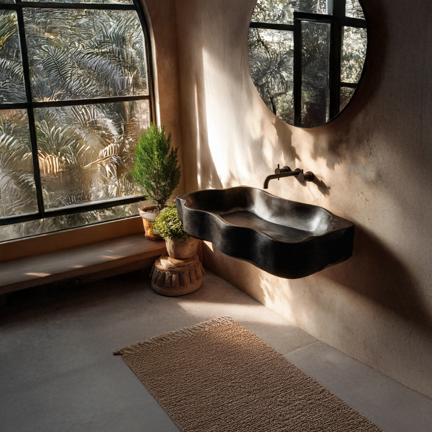 - Organic silhouette: Hand-carved and inspired by the free flow of water, ensuring no two sinks are alike.