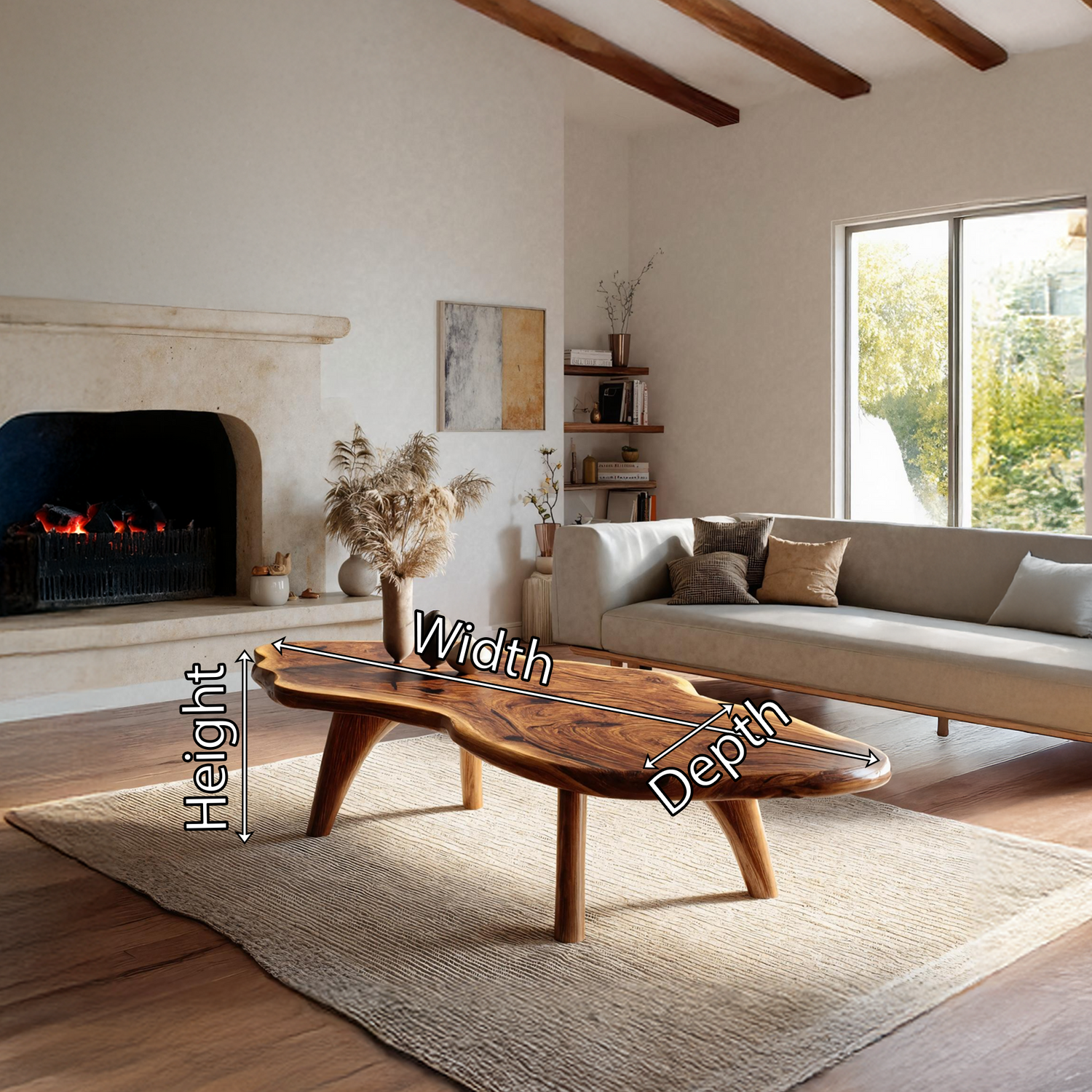 Note: Each table is handmade from natural wood, so slight variations in color, grain pattern, and texture are to be expected, making every piece truly one-of-a-kind.
