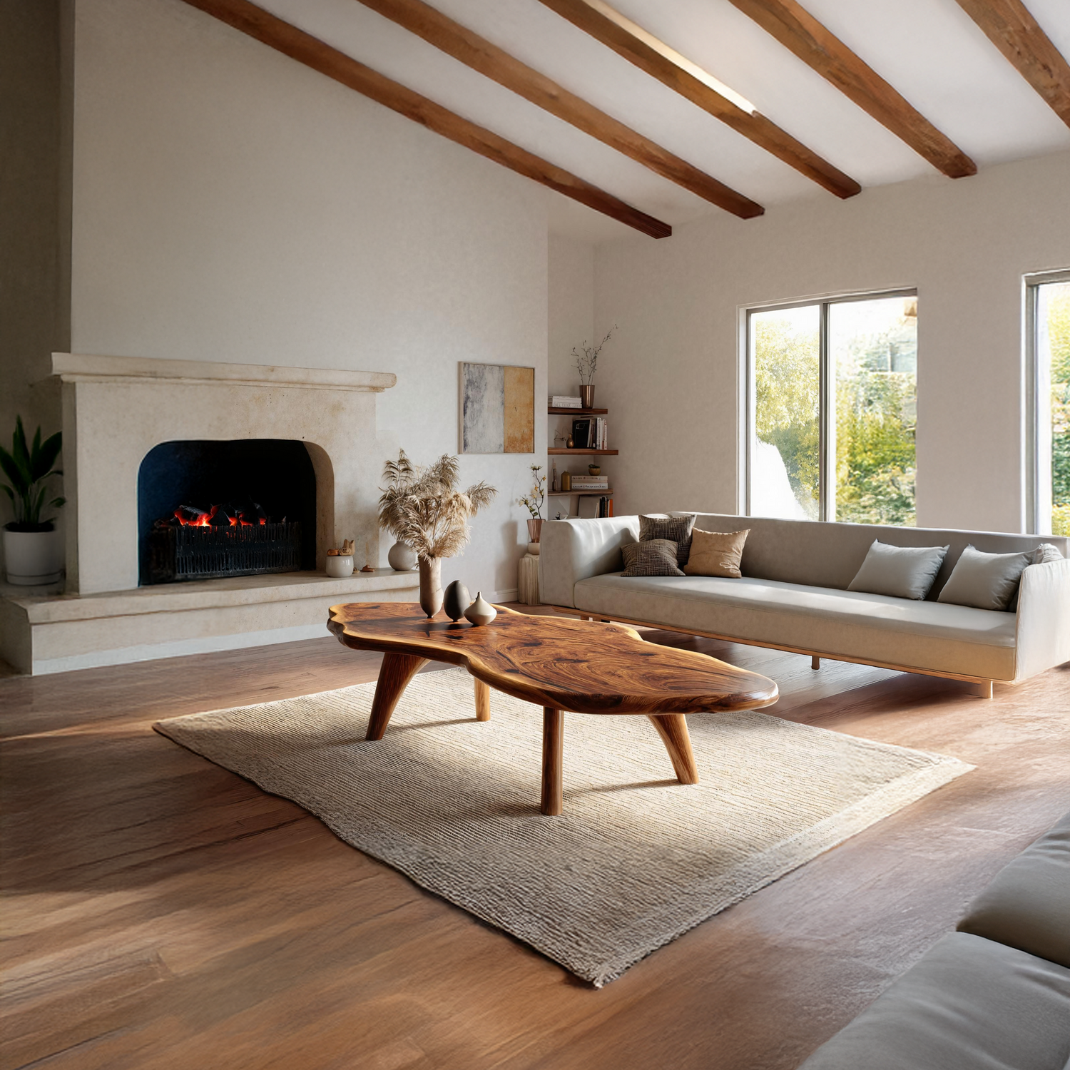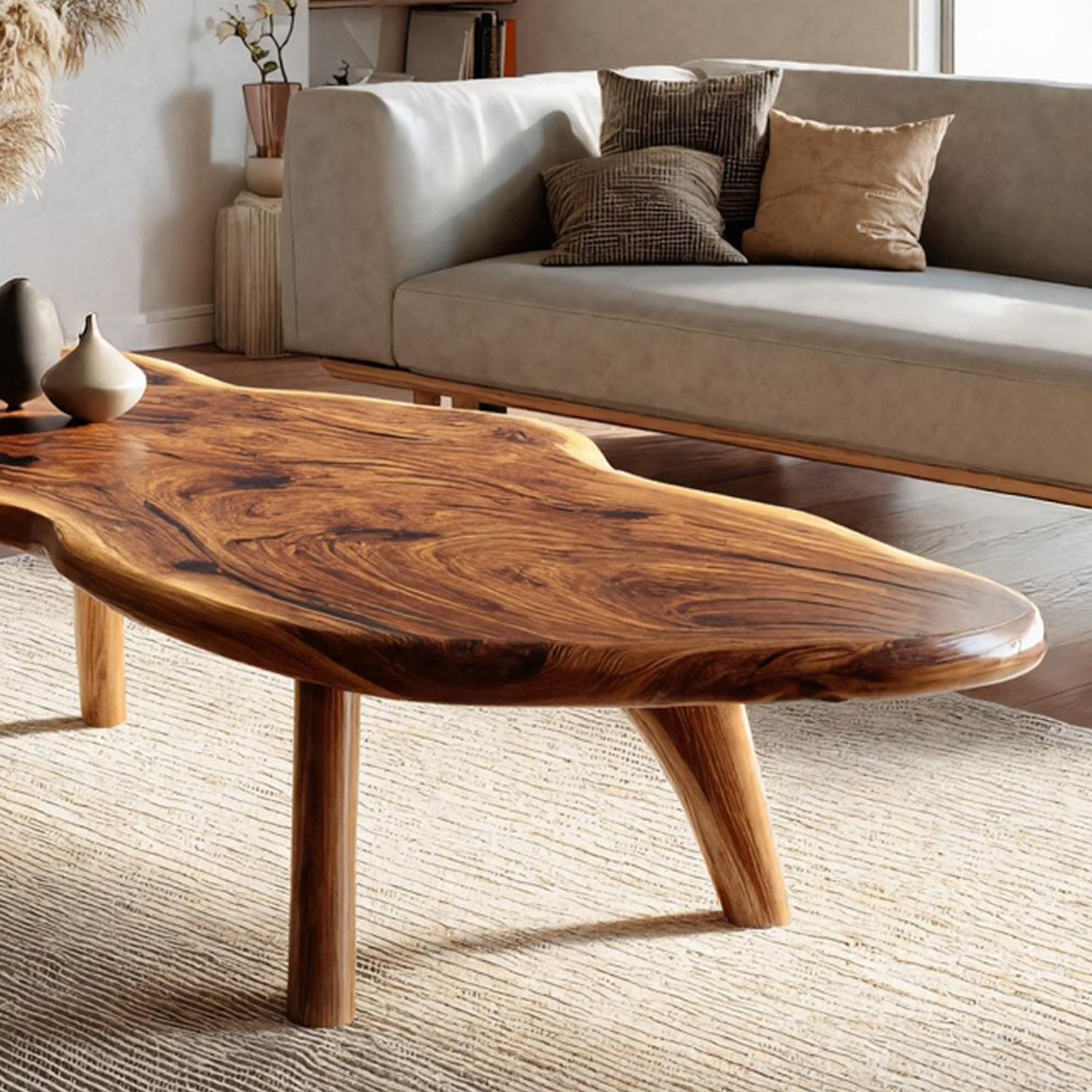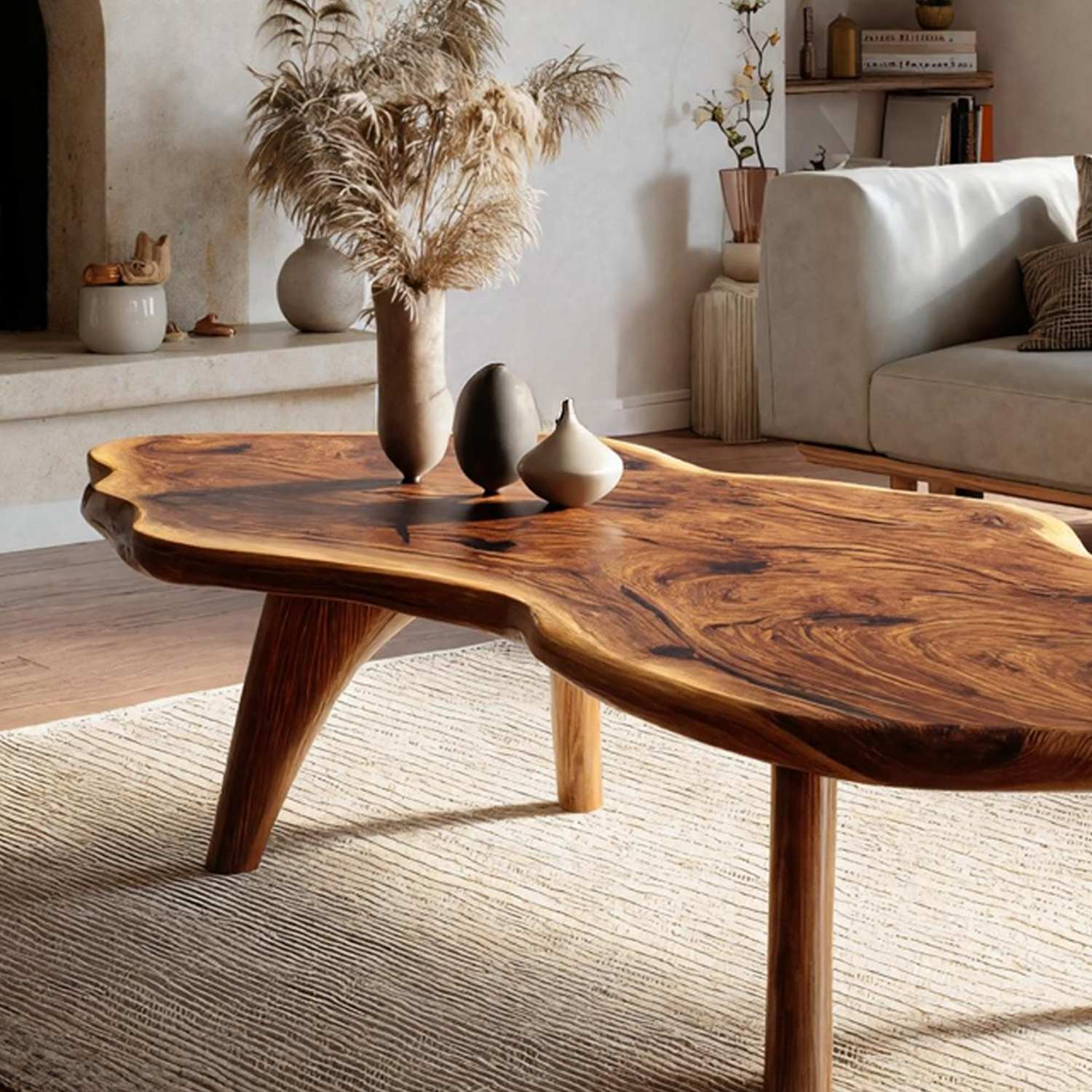 Enhance your home with the Mid Century Modern Live Edge Coffee Table For Living Room Look. Expertly crafted from solid wood, this table combines the organic beauty of a live-edge design with the clean lines and balance of mid-century modern style. Its smooth finish and natural grain make it a striking centerpiece, perfect for displaying décor, serving coffee, or anchoring your seating area. Blending functionality with timeless design, it adds sophistication, warmth, and a modern aesthetic to your living room décor.