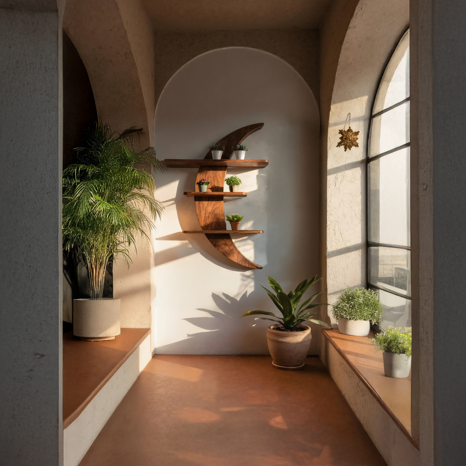 Mid Century Moon Wall Shelf For Cozy Corner Decor