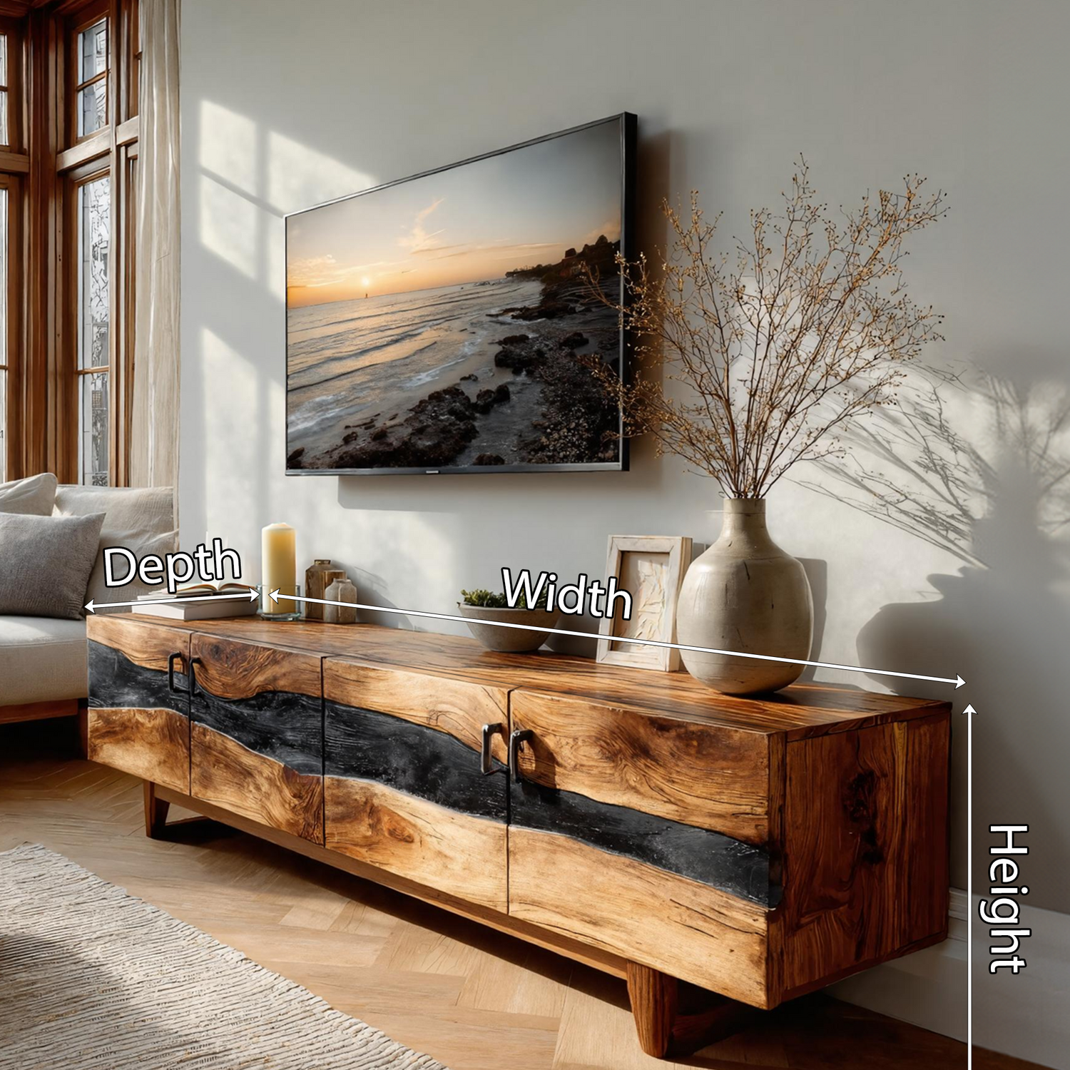 Crafted from natural solid wood, this TV cabinet features a streamlined silhouette and beautifully exposed grain patterns. The open-shelf structure keeps essentials within easy reach—perfect for media devices, books, or decorative items—while maintaining a spacious and airy look. Ideal for living rooms, bedrooms, workspaces, or small interiors needing smart organization.