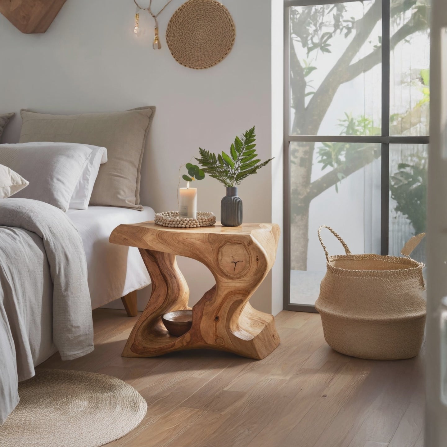 Crafted by hand from solid natural wood, each nightstand is built to last and finished with natural oils and waxes for a smooth, tactile feel. The wood’s unique knots, grain patterns, and warm tones add character to every piece.