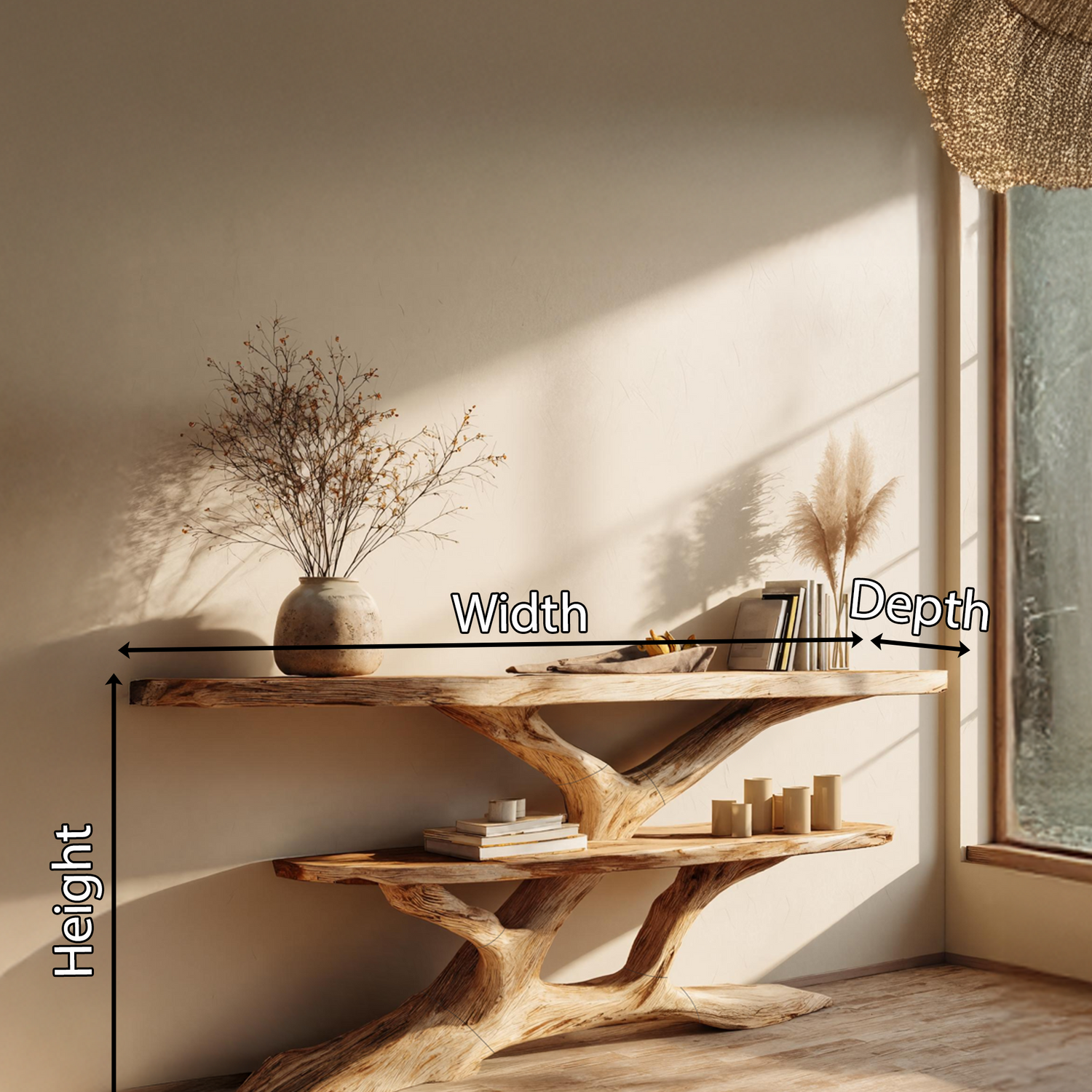 Made entirely from solid wood, every console table reflects the unique story of the material it’s built from. No two pieces are ever identical—each features distinct knots, color variations, and grain patterns that showcase the raw beauty of nature. This handcrafted quality ensures durability and authenticity, elevating it beyond a simple piece of furniture into a work of natural art.
