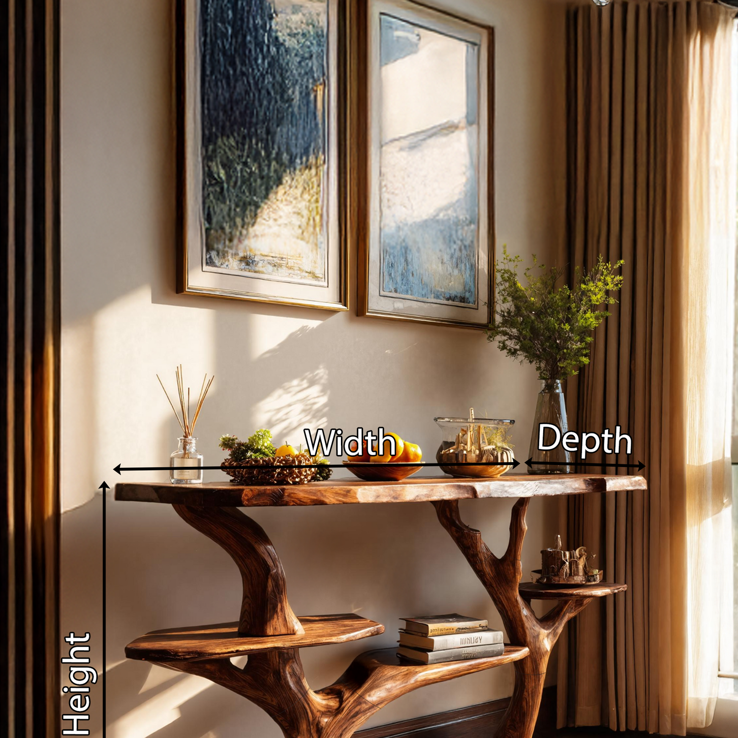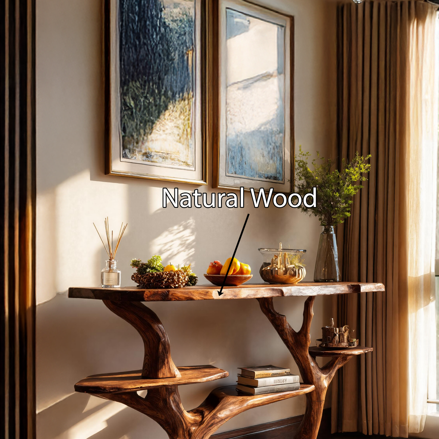 Made entirely from solid wood, every console table reflects the unique story of the material it’s built from. No two pieces are ever identical—each features distinct knots, color variations, and grain patterns that showcase the raw beauty of nature. This handcrafted quality ensures durability and authenticity, elevating it beyond a simple piece of furniture into a work of natural art.