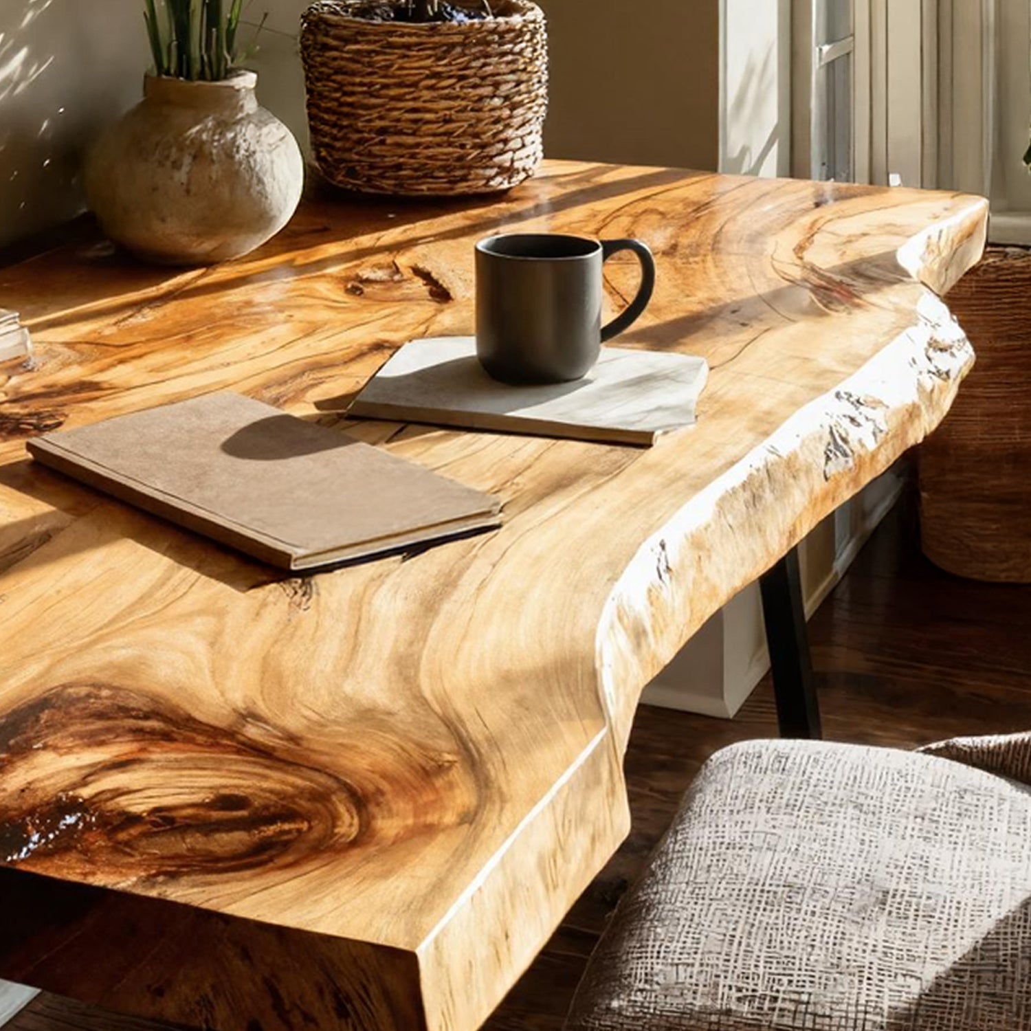 - Modern interiors wanting a sculptural wooden centerpiece