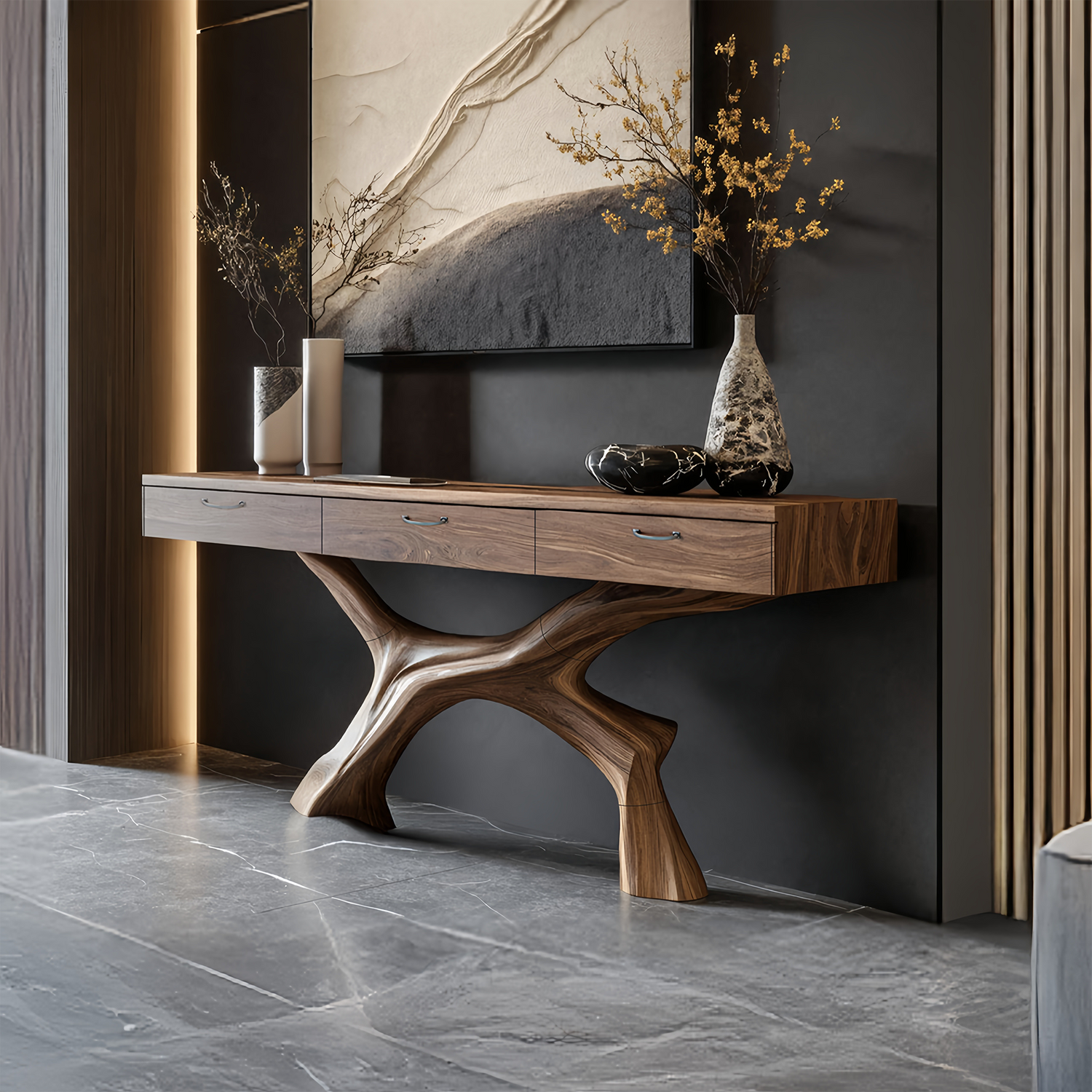 Made entirely from solid wood, every console table reflects the unique story of the material it’s built from. No two pieces are ever identical—each features distinct knots, color variations, and grain patterns that showcase the raw beauty of nature. This handcrafted quality ensures durability and authenticity, elevating it beyond a simple piece of furniture into a work of natural art.