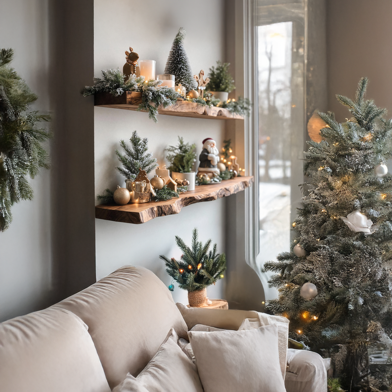 - Displaying ornaments, candles, or Christmas accents in the living room or entryway