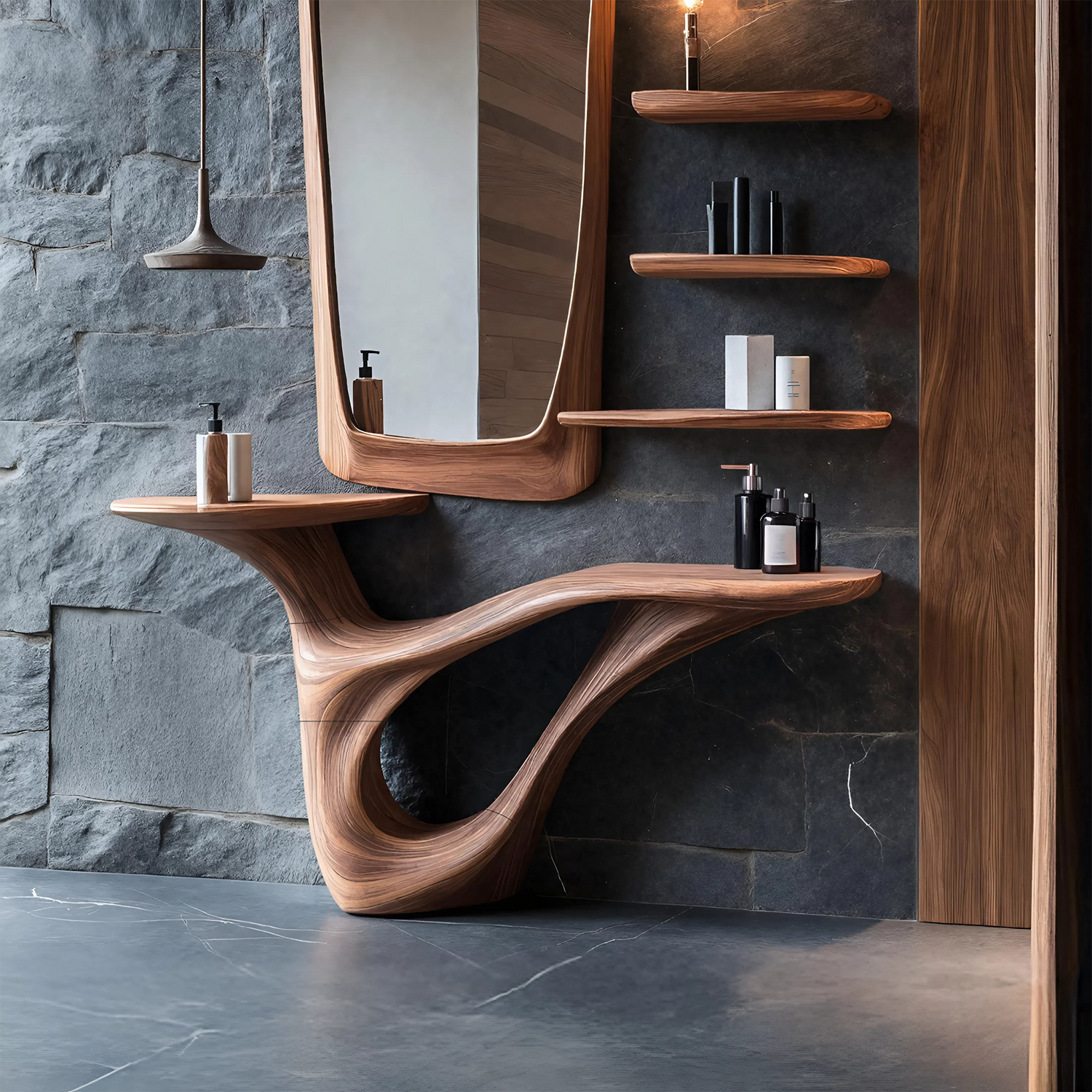 Made from reclaimed monkey pod wood, each vanity highlights unique grain patterns and natural textures. Its rustic-modern character fits seamlessly into interiors ranging from minimalist and Scandinavian to classic or vintage styles.