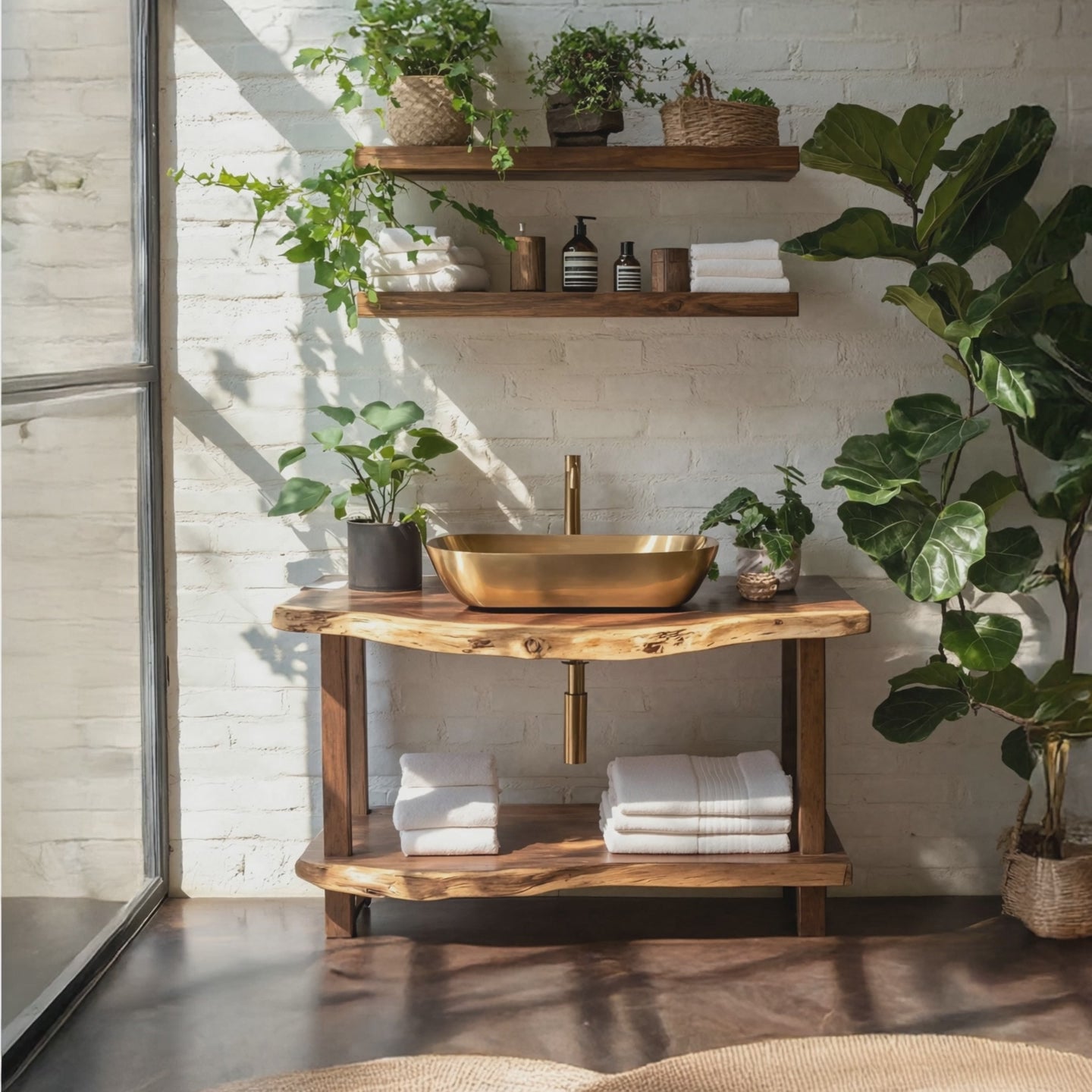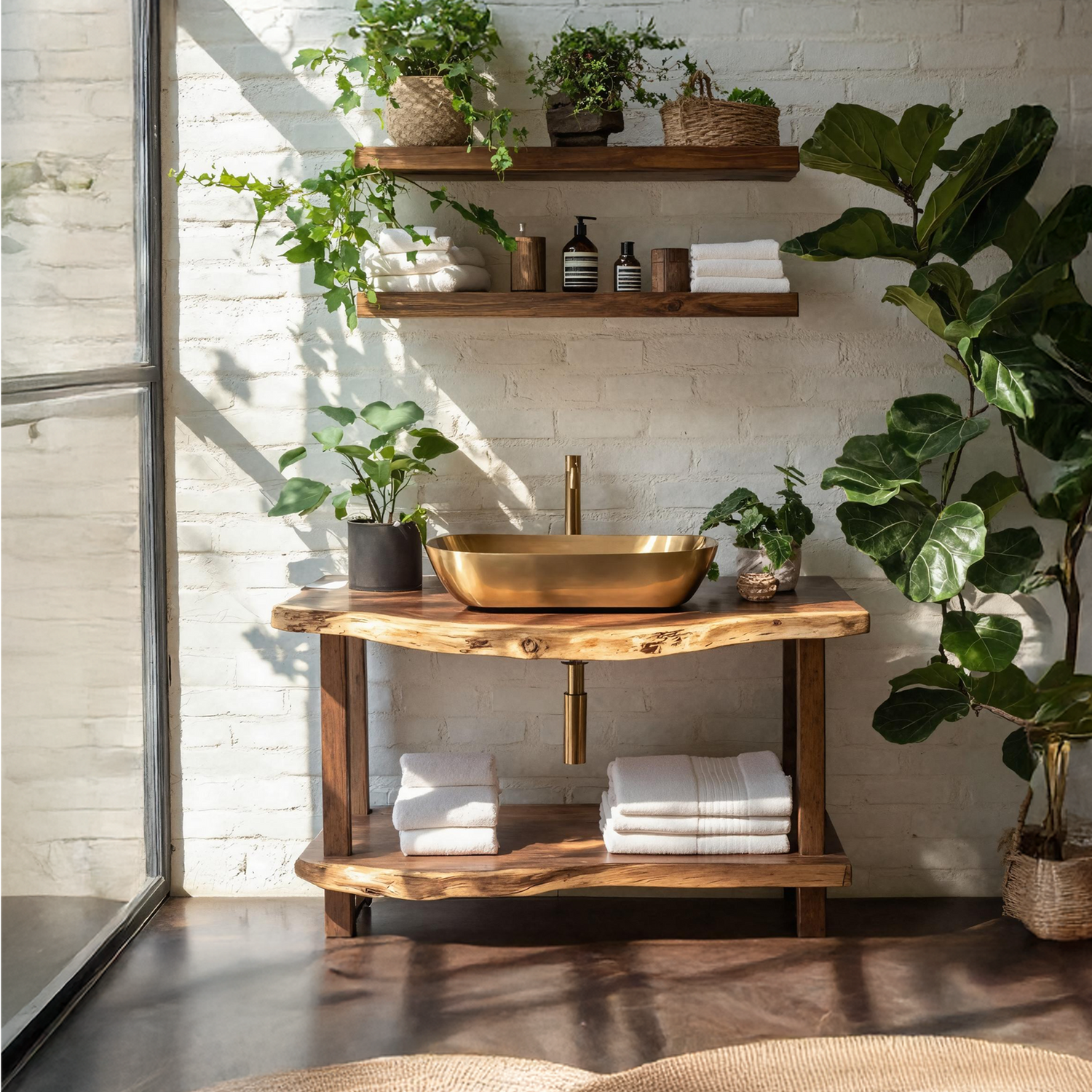 - Unique Live Edge Finish: Each piece retains the raw, organic shape of the wood, ensuring no two vanities are identical.