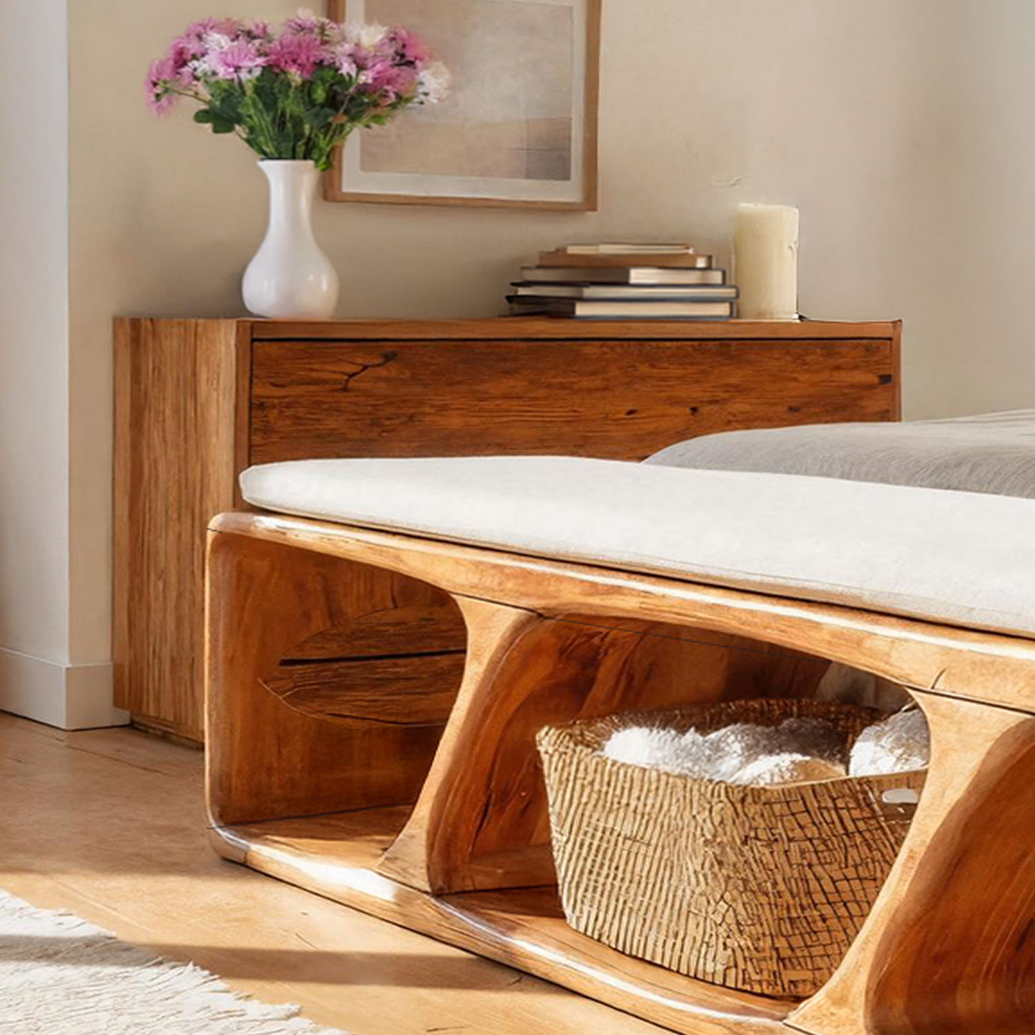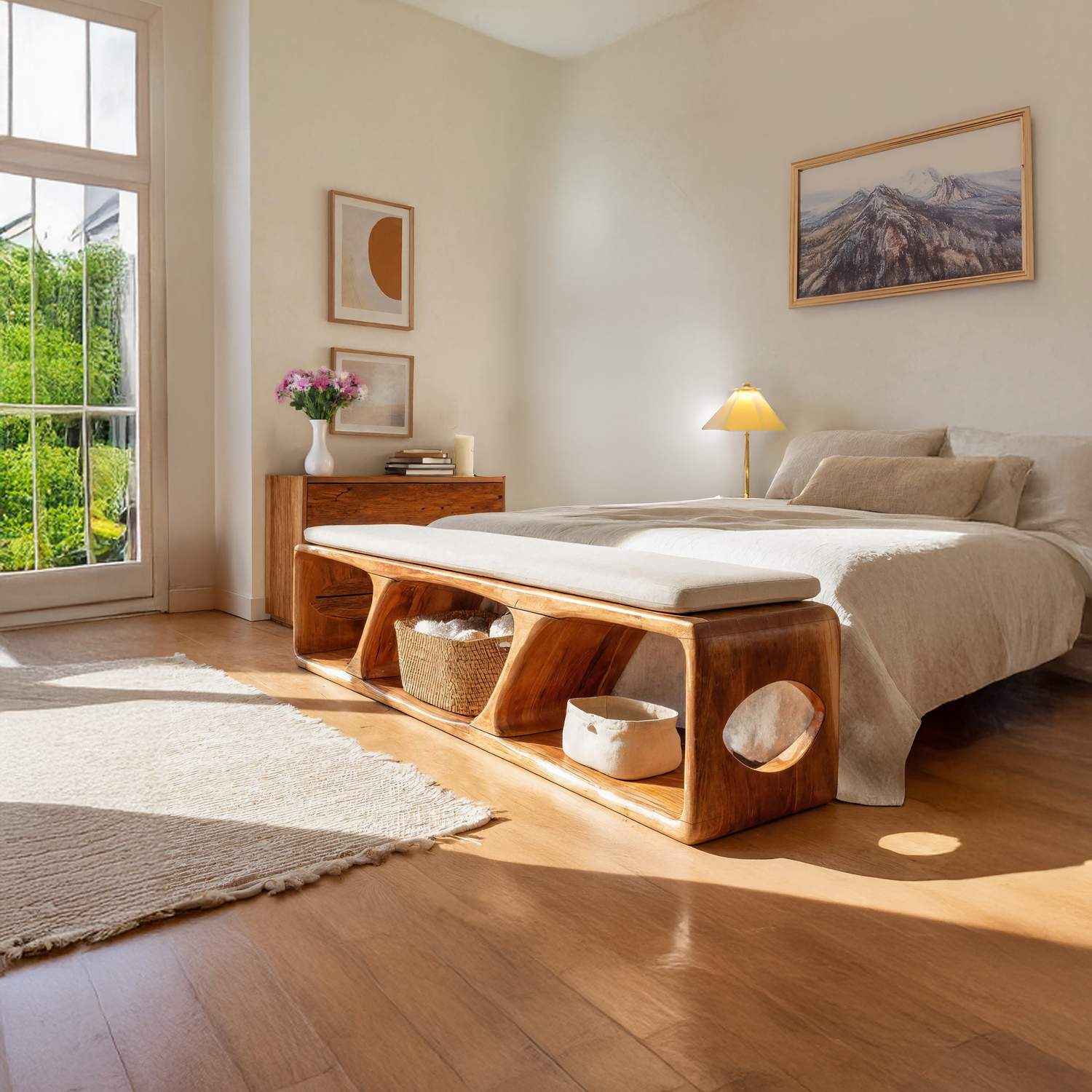 Mid Century Wood Bench For Warm Interior Spaces brings a sense of balance and quiet warmth to interiors influenced by mid-century design. Crafted from solid wood and shaped with clean, timeless proportions, this bench offers practical seating while maintaining a welcoming, understated presence. Its refined form works naturally at the foot of the bed, along a wall, or within thoughtfully styled spaces that favor comfort and natural materials.