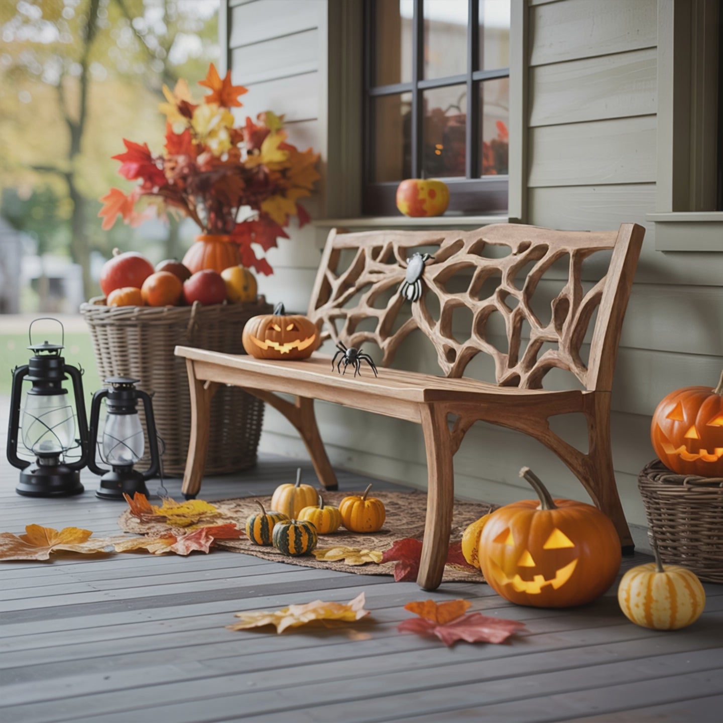 - The bench can be used indoors and outdoors. This does not include other items in the picture (pumpkins, candles, or other decorative accessories, etc.)