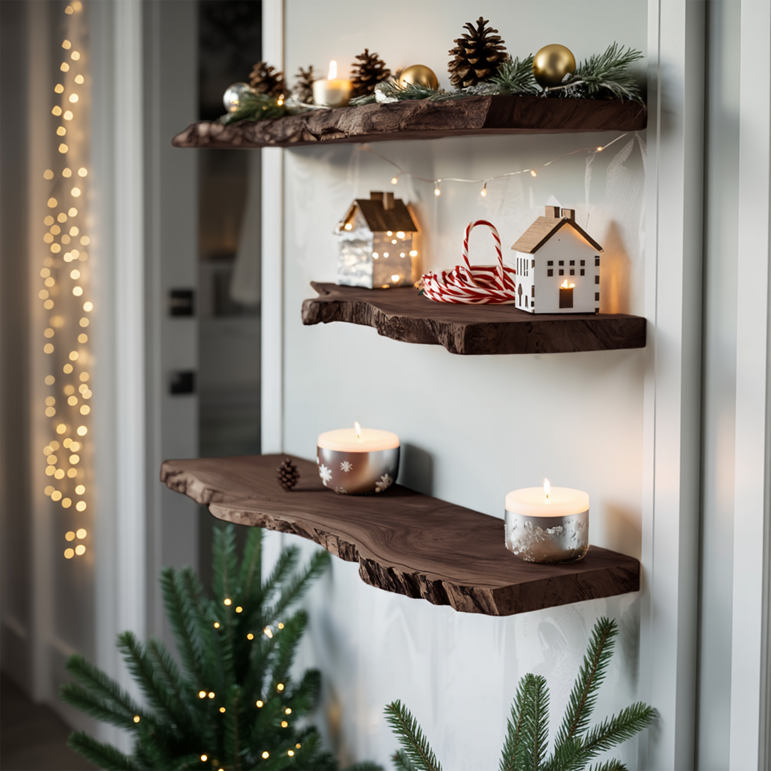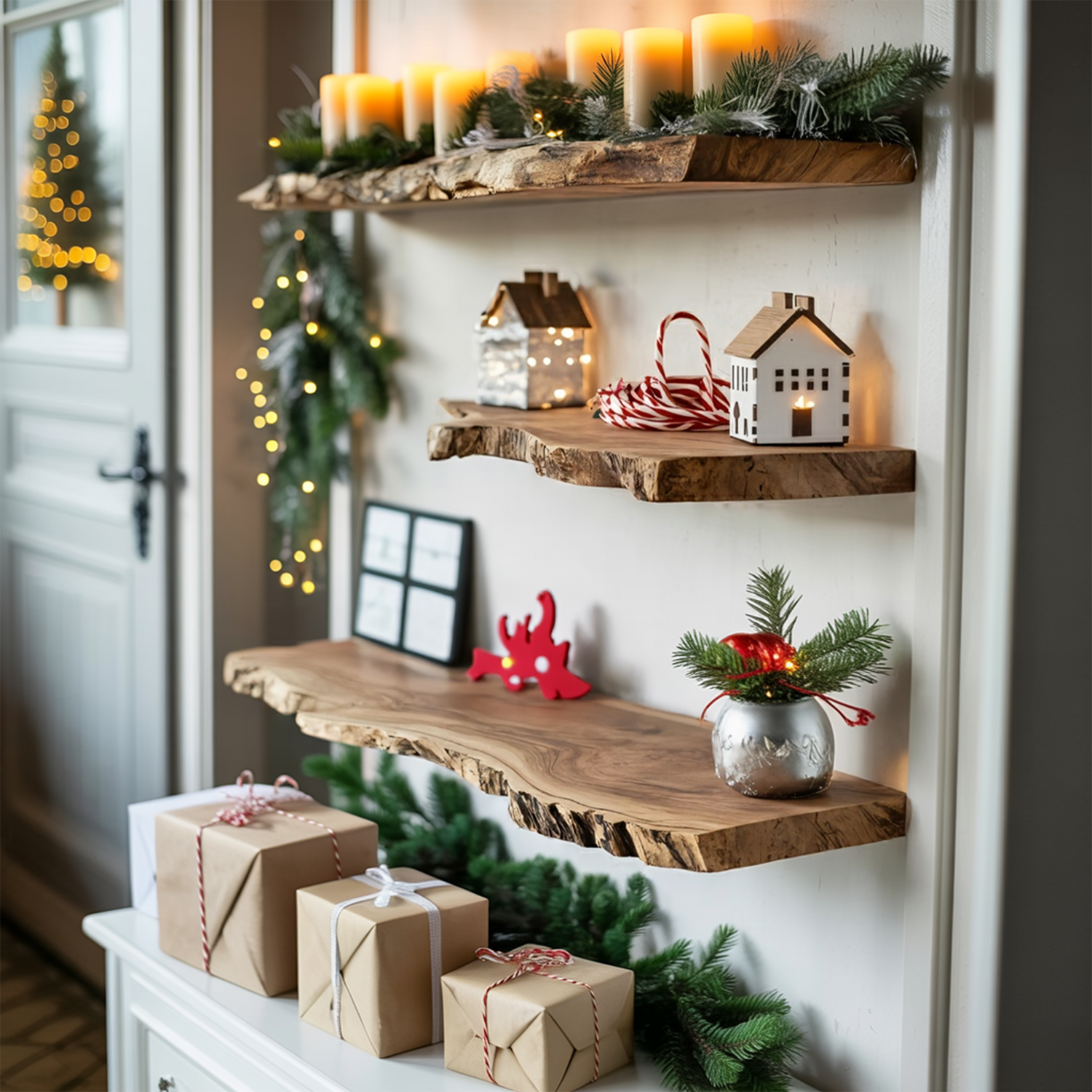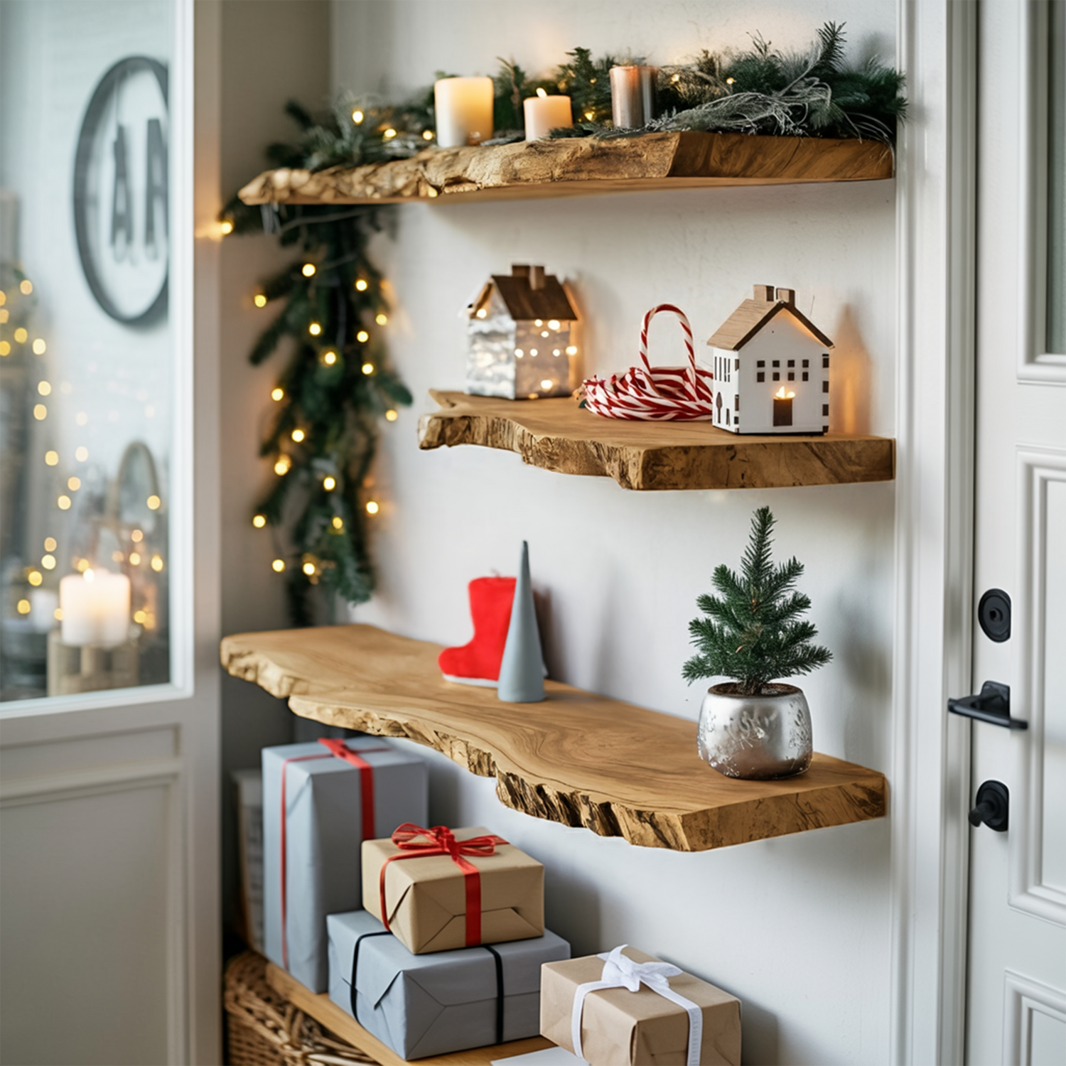 - Displaying ornaments, candles, or Christmas accents in the living room or entryway