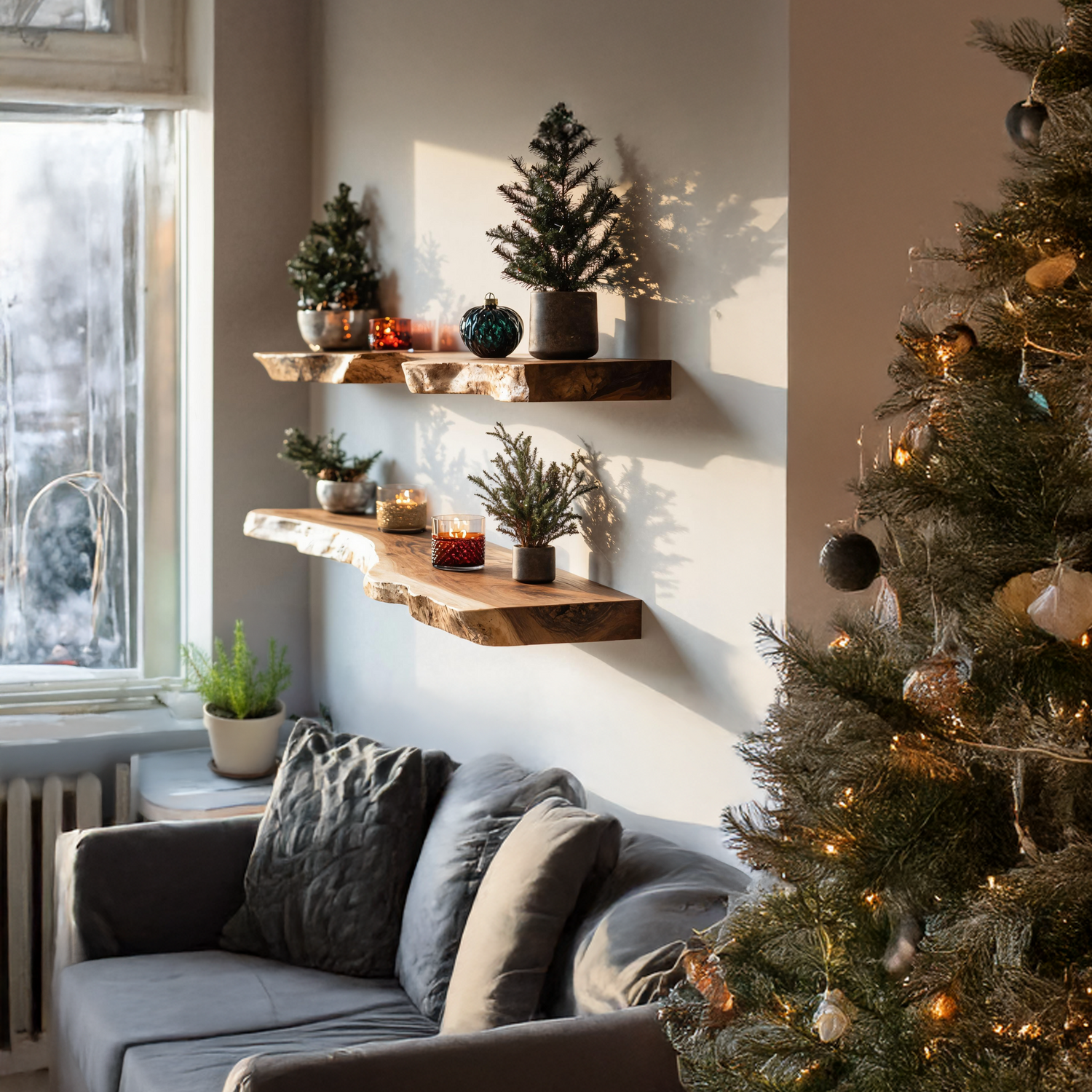 With a sleek wall-mounted form, this shelf integrates seamlessly into both modern and traditional interiors. The floating effect gives a clean, spacious appearance, ideal for showcasing Christmas décor, small plants, or family keepsakes. Whether placed in the living room, dining area, or bedroom, it instantly adds holiday spirit and sophistication to your space.