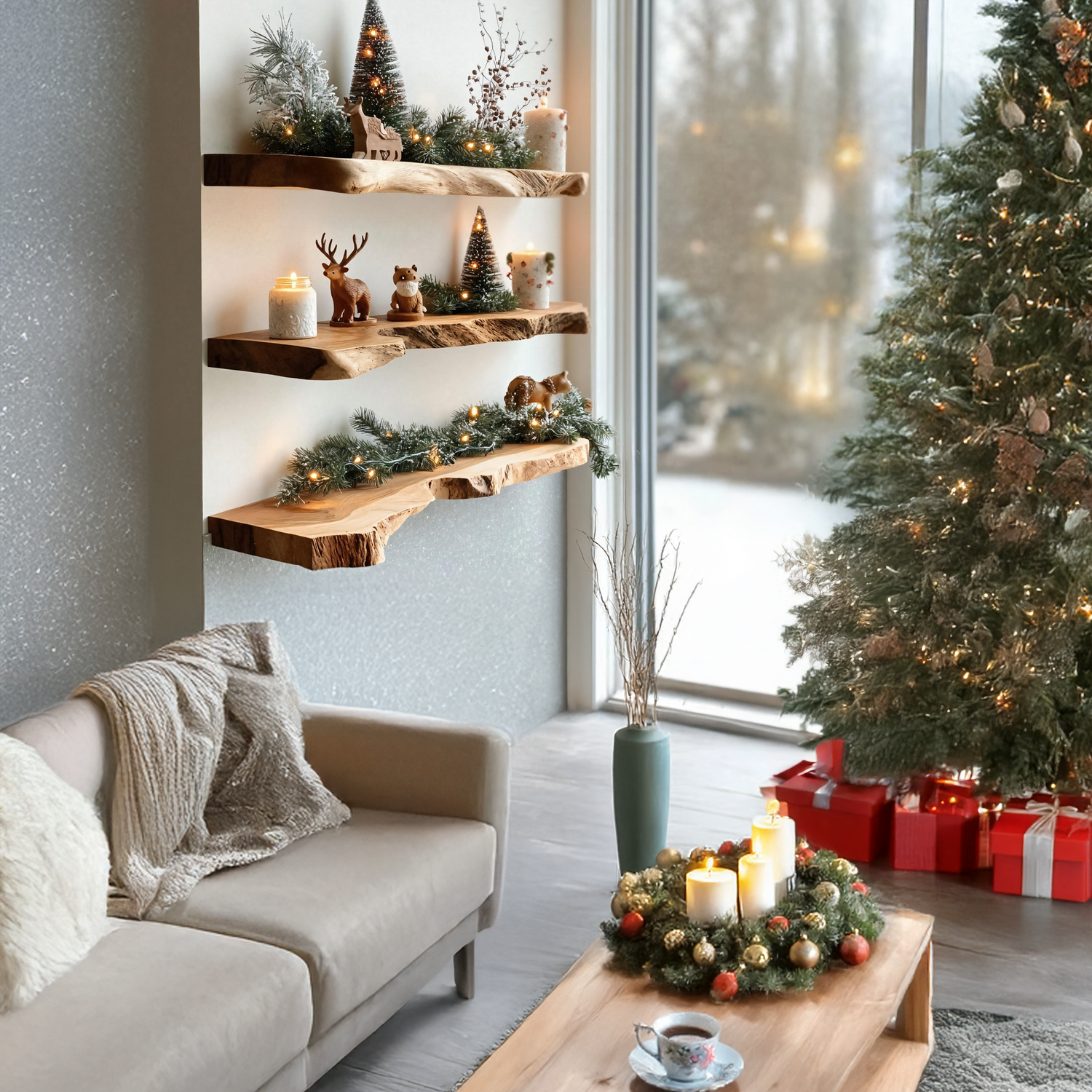 With a sleek wall-mounted form, this shelf integrates seamlessly into both modern and traditional interiors. The floating effect gives a clean, spacious appearance, ideal for showcasing Christmas décor, small plants, or family keepsakes. Whether placed in the living room, dining area, or bedroom, it instantly adds holiday spirit and sophistication to your space.