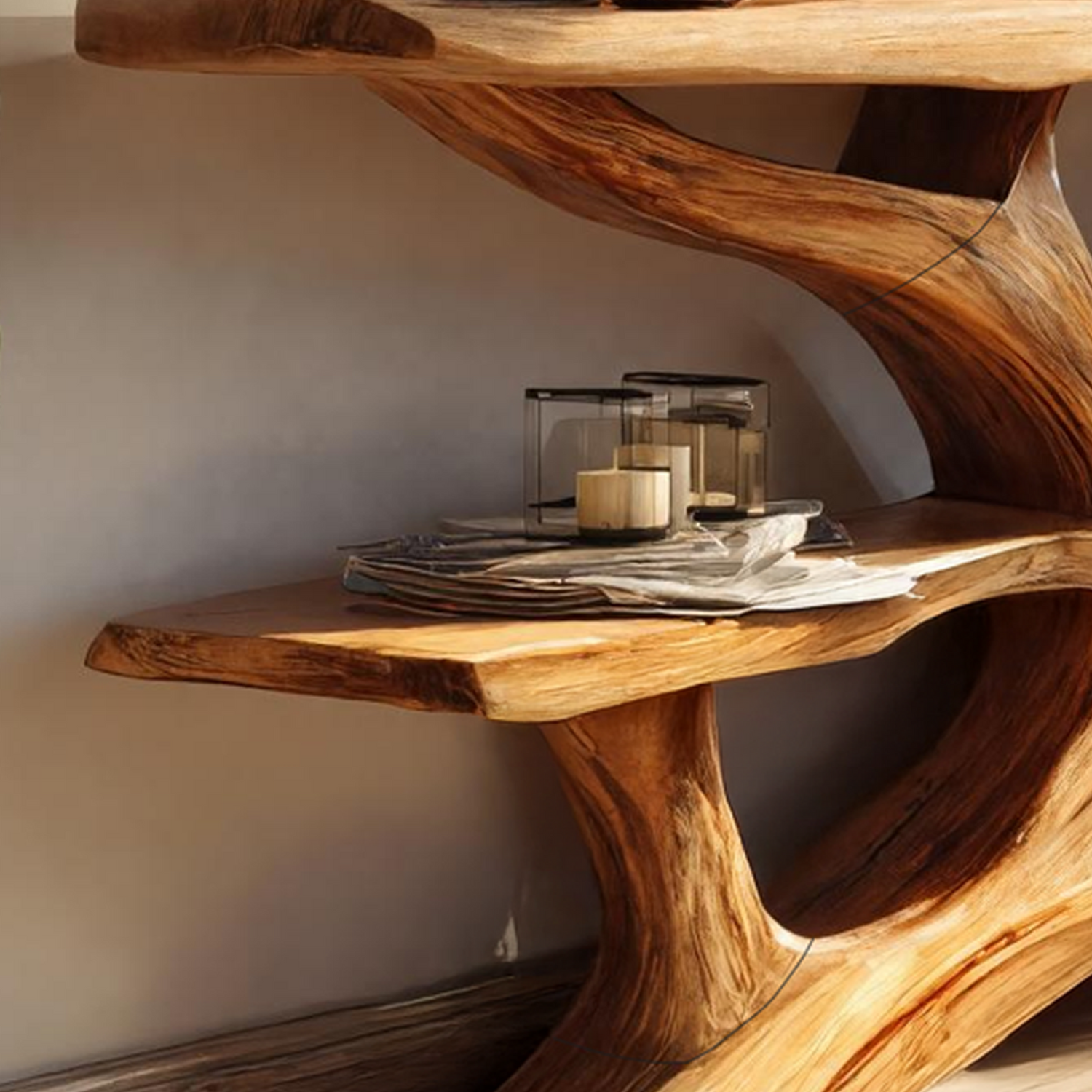 Mid Century Wooden Live Edge Console Table For Luxury Bedroom Decor