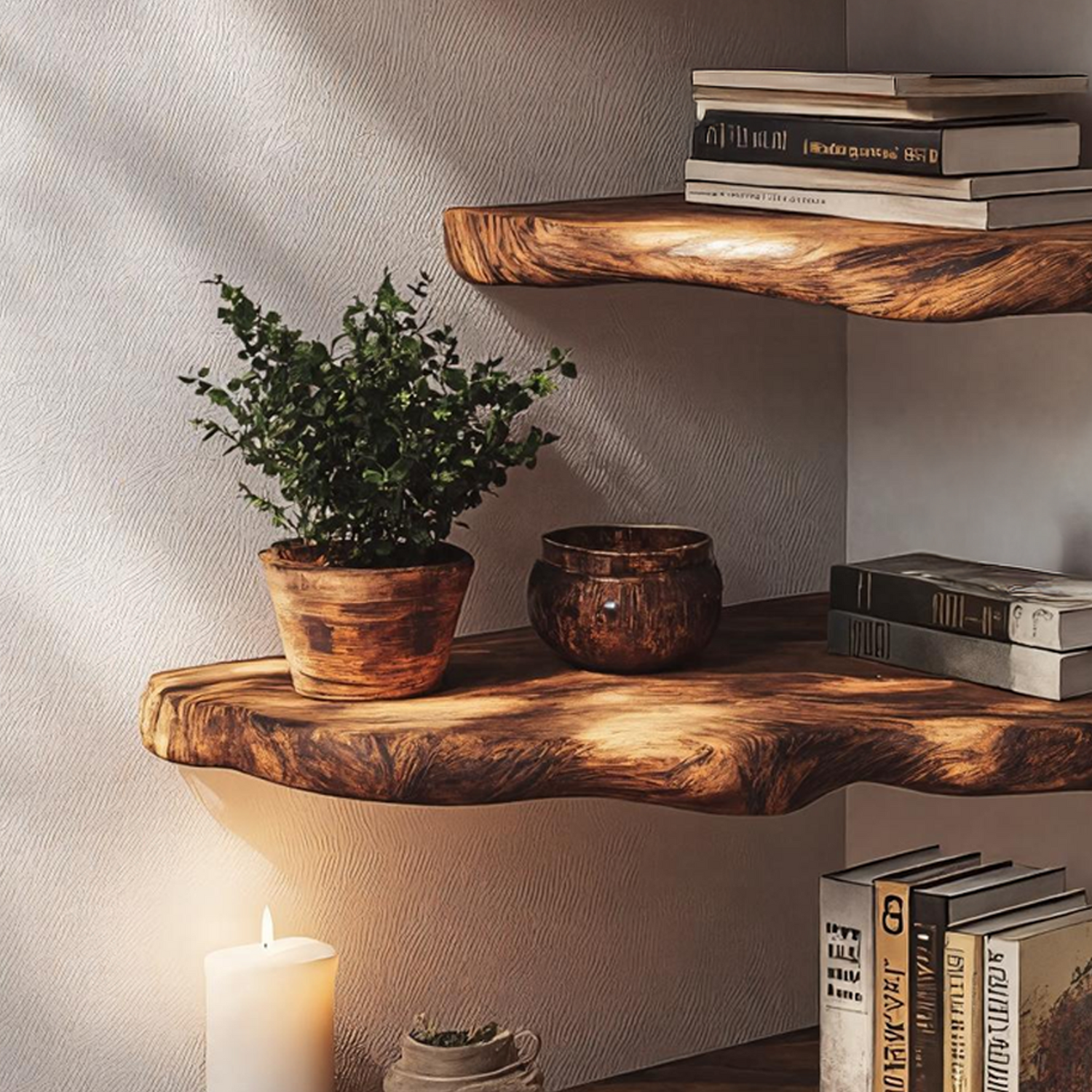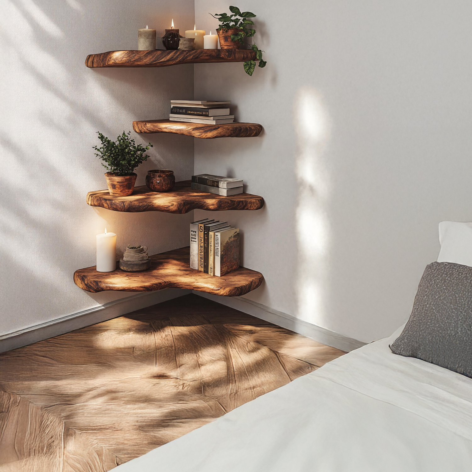 - Displaying décor, books, candles, or small plants in living rooms and bedrooms