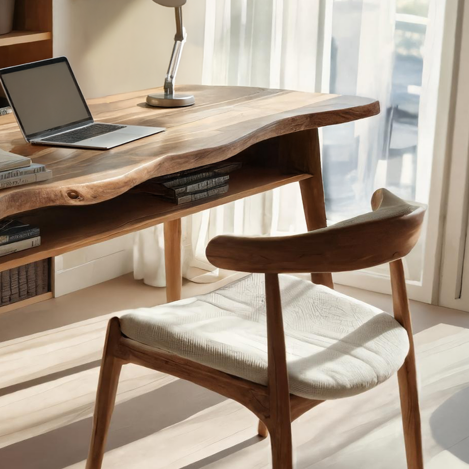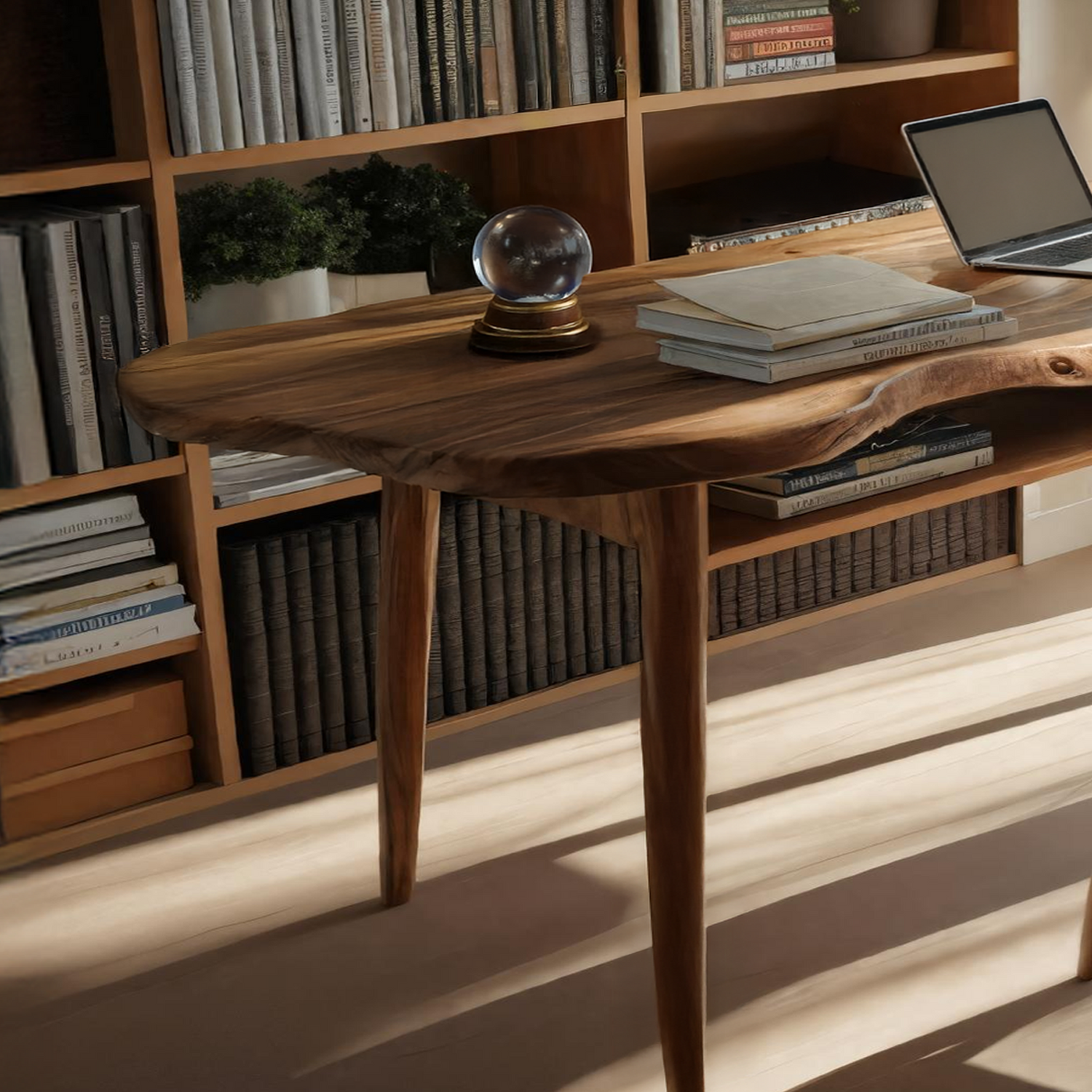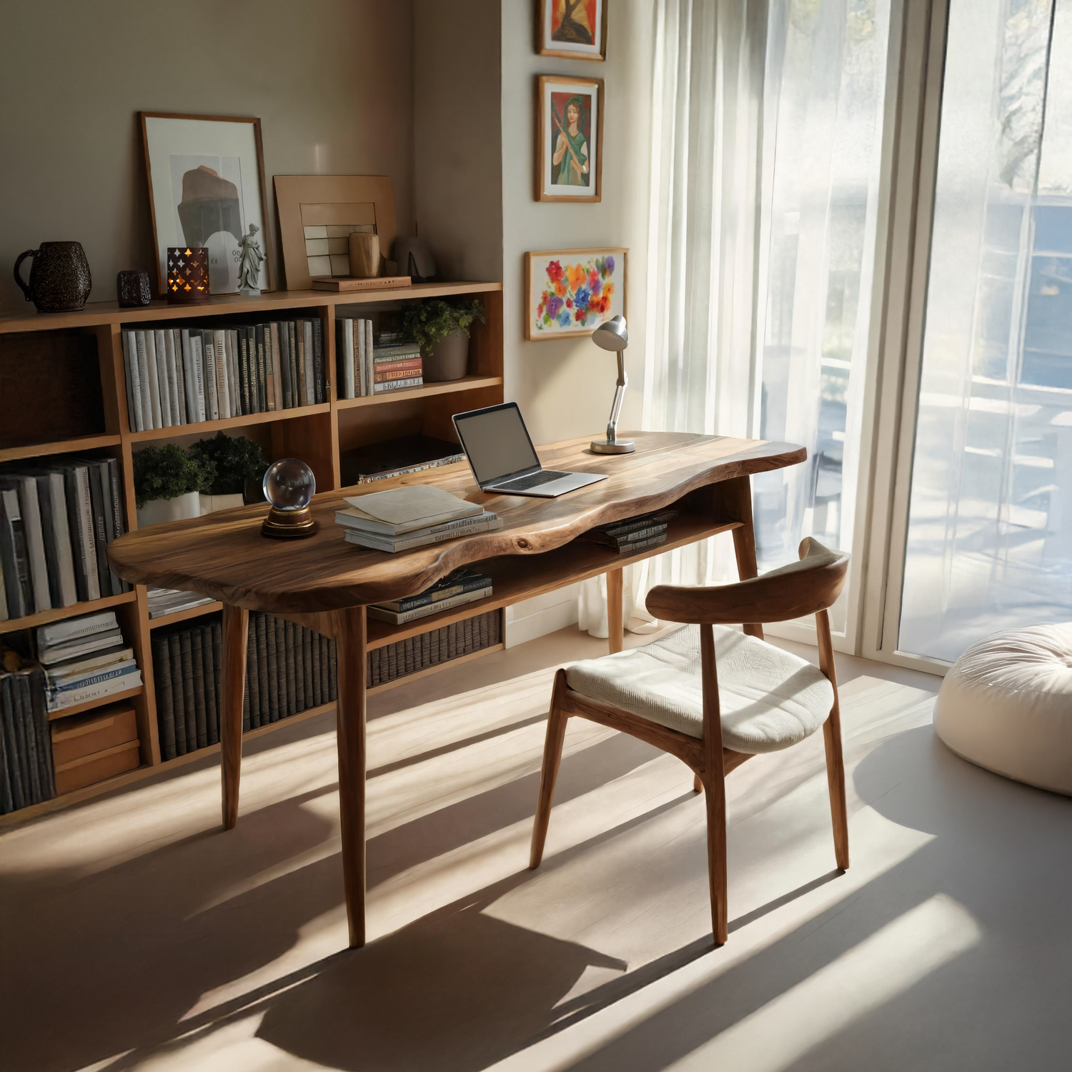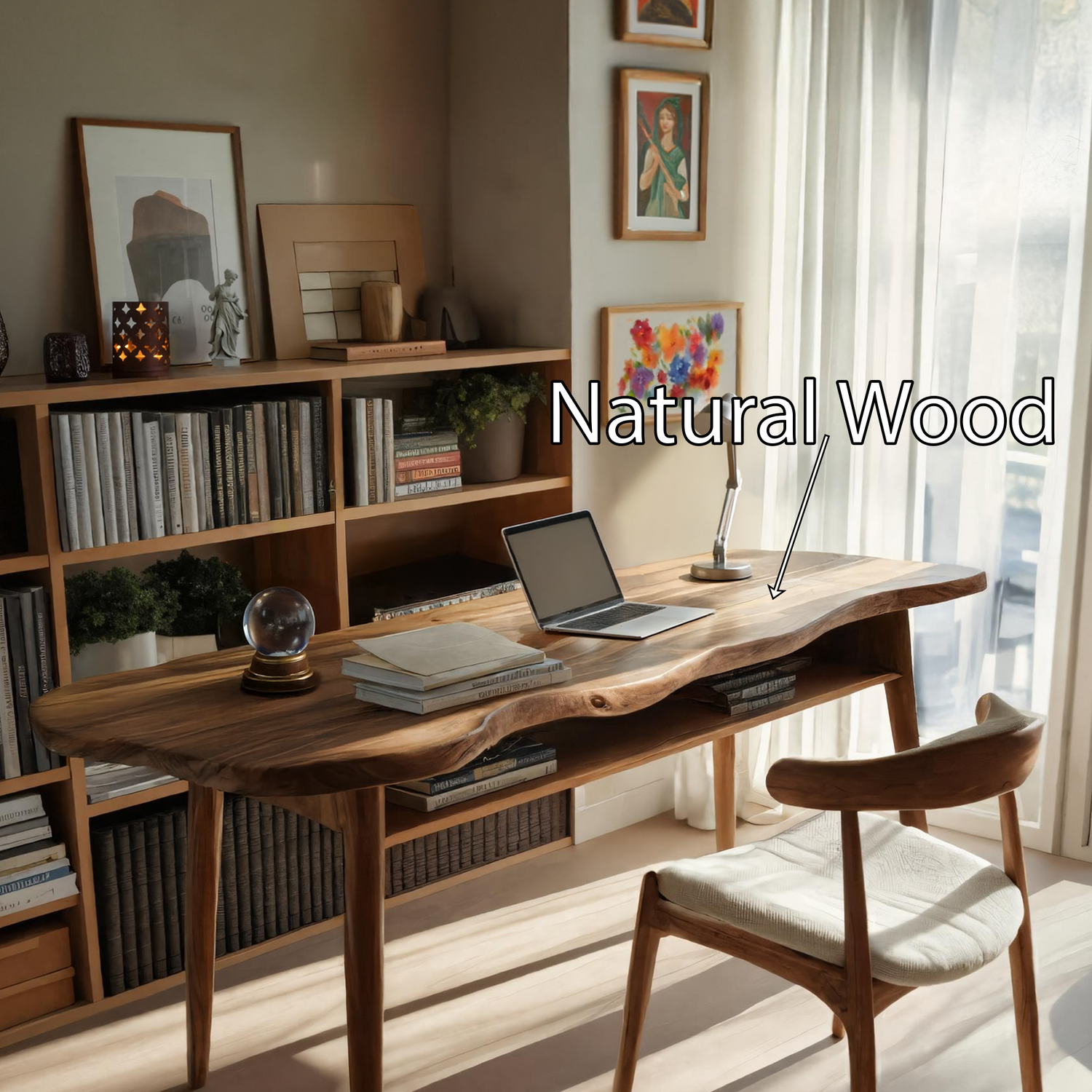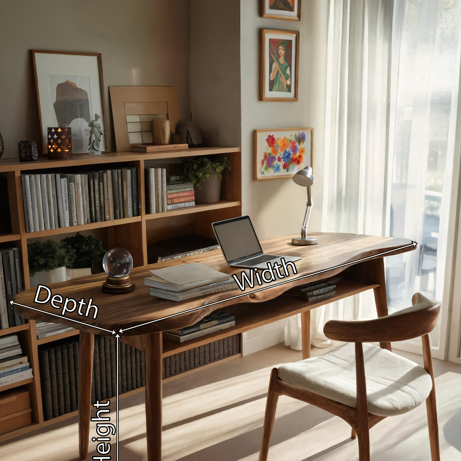 Bring a sense of natural character and effortless functionality to your home with our Mid Century Wooden Live Edge Desk For Modern Home Office Decor, designed to create an open, uncluttered workspace while enhancing the warmth of your interior. Its organic live-edge contours and balanced mid-century form allow it to stand out gently, becoming an understated statement piece in any setting.