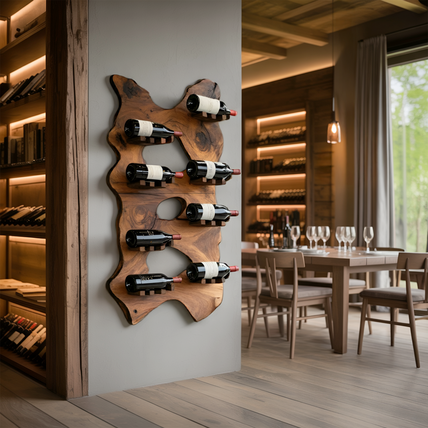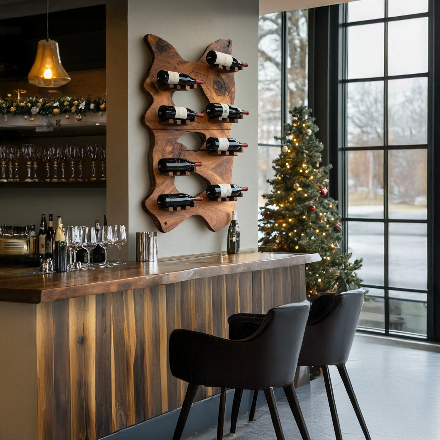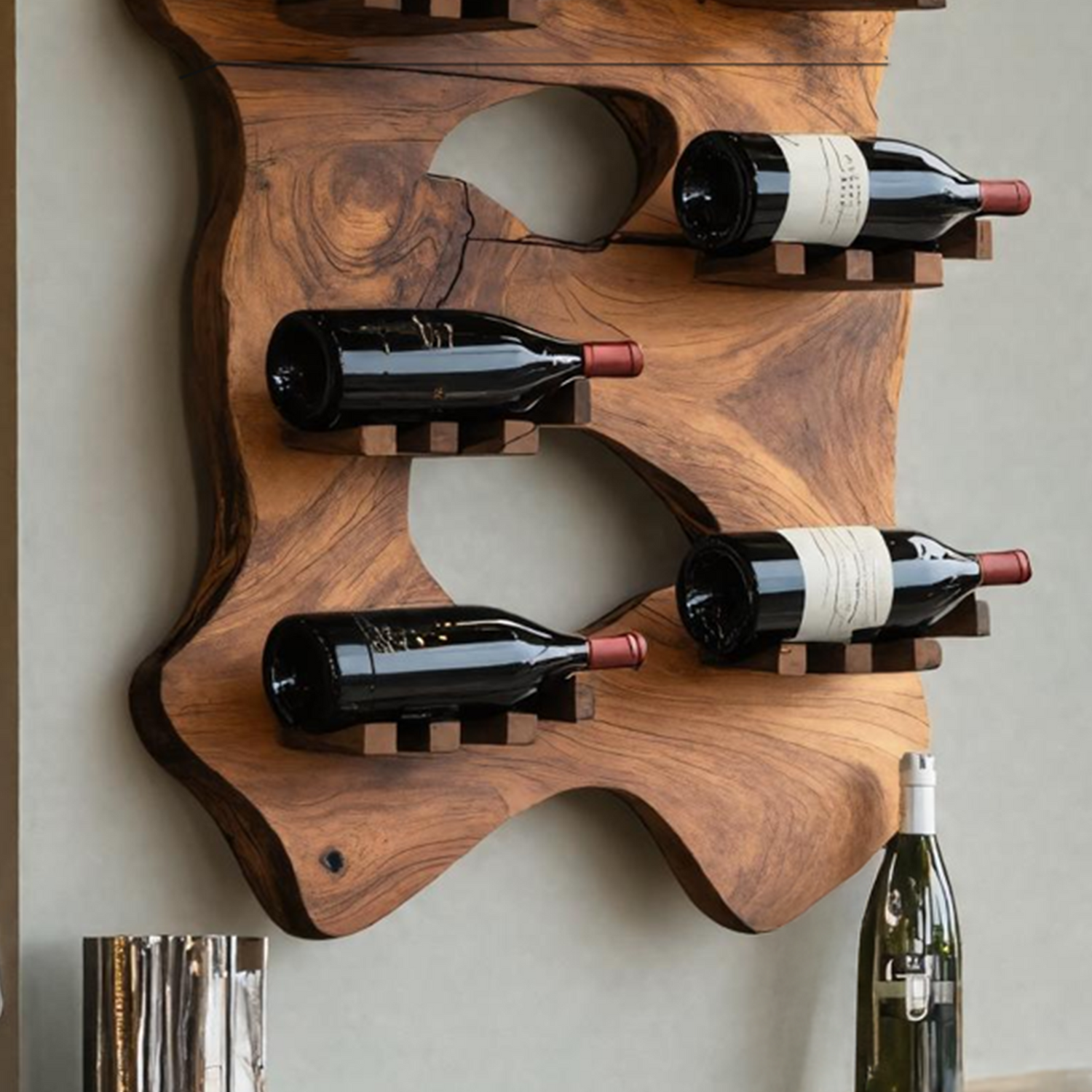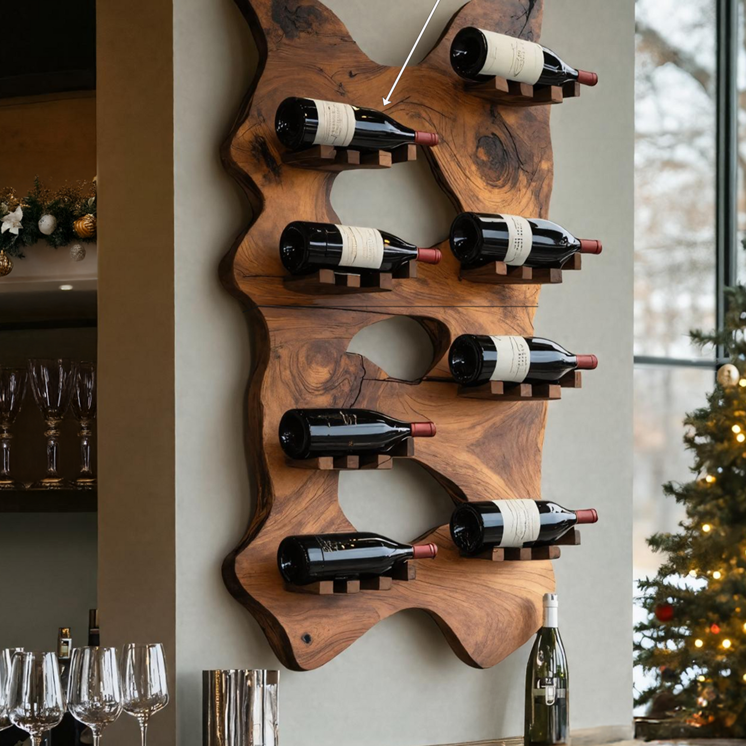 Mid Century Wooden Live Edge Wine Holder For Living Room Decor