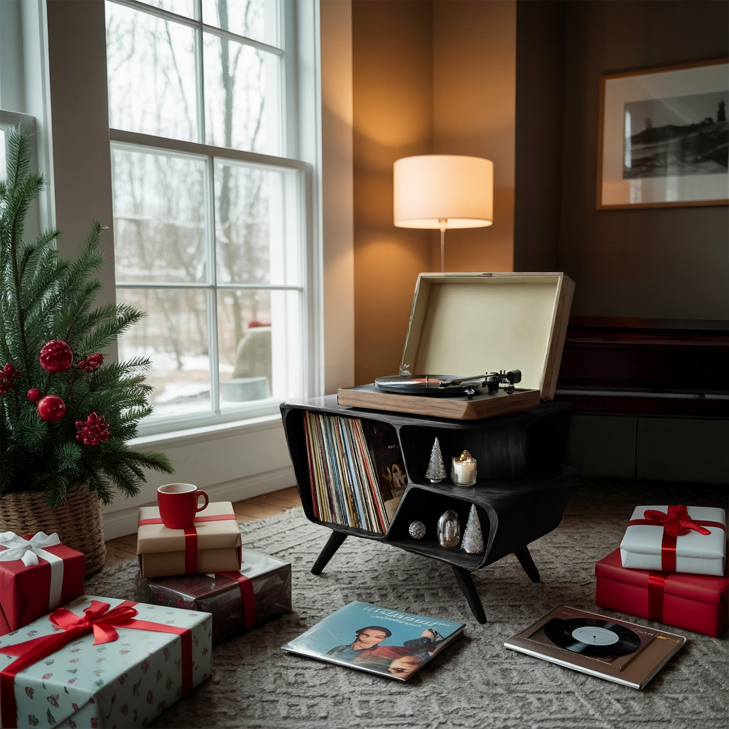 With its clean, minimalist profile and natural finish, this record stand complements both traditional and modern interiors. The spacious design provides room for vinyls, books, or decorative accents, creating an elegant balance of form and function. Its handcrafted details make it a standout centerpiece that enhances your holiday décor with warmth and character.