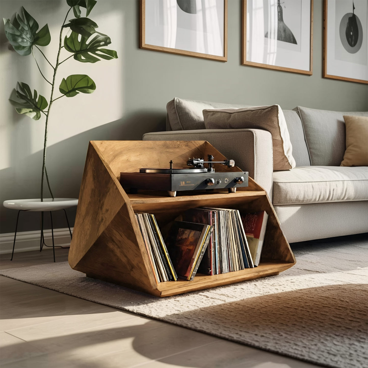 Designed with a clean, versatile form, this record player stand supports both practical storage and visual harmony. Its balanced structure allows it to work as a standalone statement or as a complementary element within modern, minimalist, or warm natural interiors. More than a storage solution, it serves as a quiet expression of your appreciation for vinyl culture and intentional living.