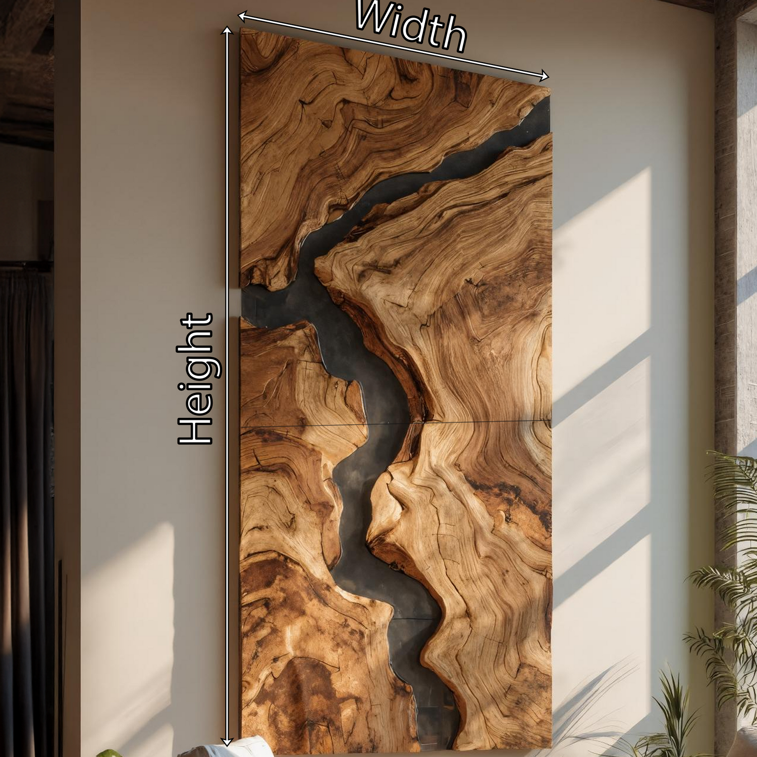 This wall-mounted sculpture blends fluid, organic contours with minimalist elegance. Hand-carved from solid hardwood, the rhythmic folds resemble ocean tides frozen in motion. The golden-toned wood grain is accentuated by deep charcoal edges, creating a striking interplay of warmth and contrast. Designed with a hidden mount, the piece floats seamlessly against your wall, enhancing its sculptural presence.