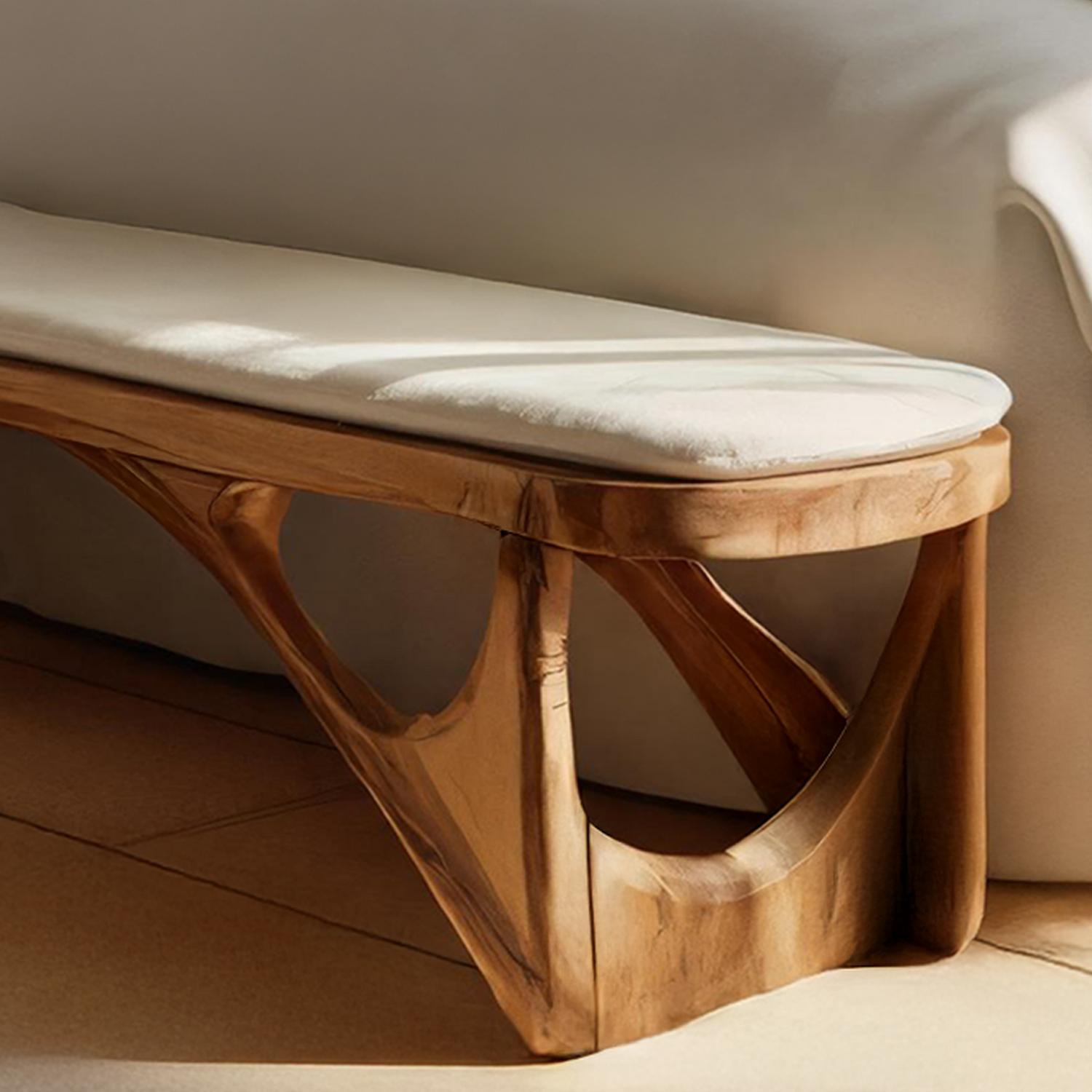 Minimalist Curved Wood Bench For End-of-Bed Design