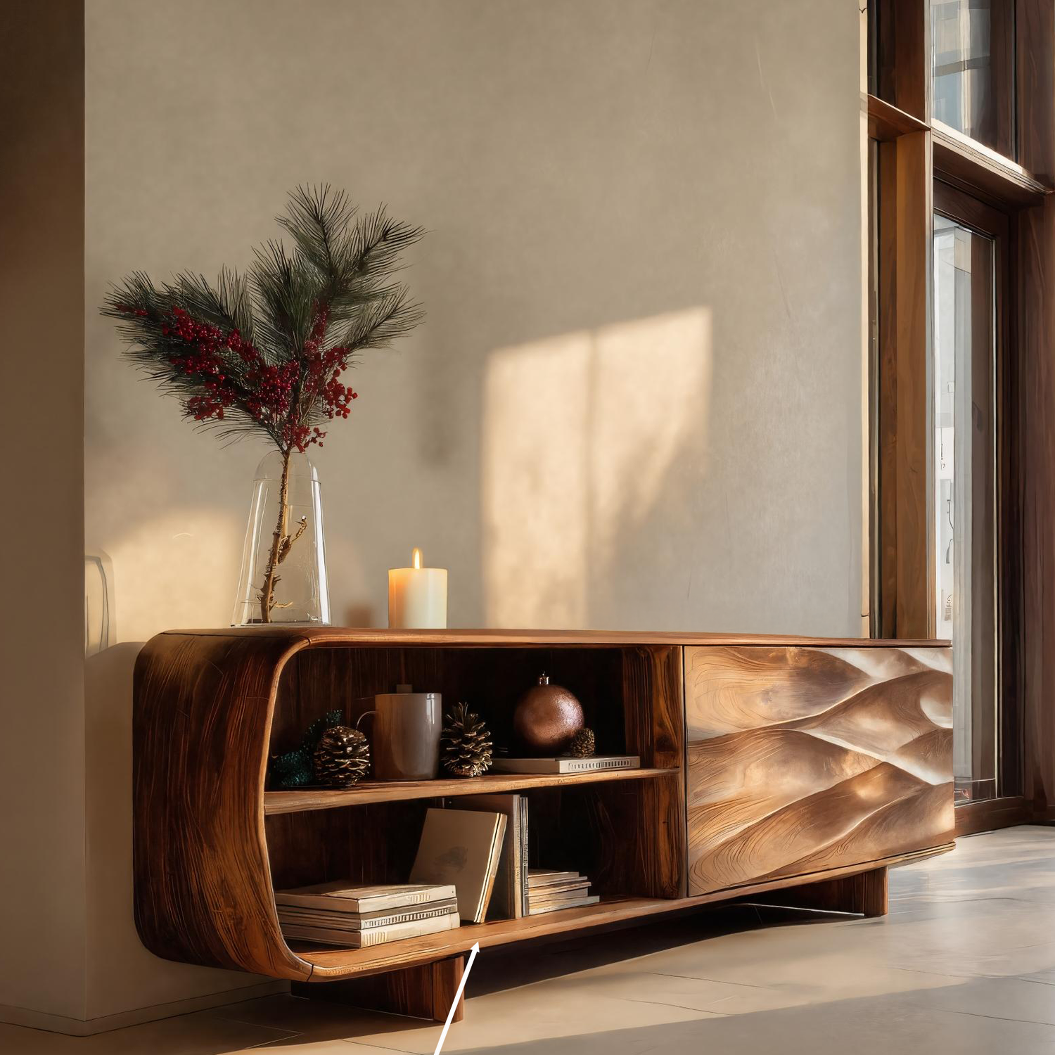Celebrate the season with refined artistry through our Modern Carved Wave Cabinet For Holiday Decoration, a sculptural piece that beautifully combines organic movement with functional elegance. Its flowing carved front captures the gentle rhythm of waves, creating a serene visual centerpiece for festive displays or everyday interiors.