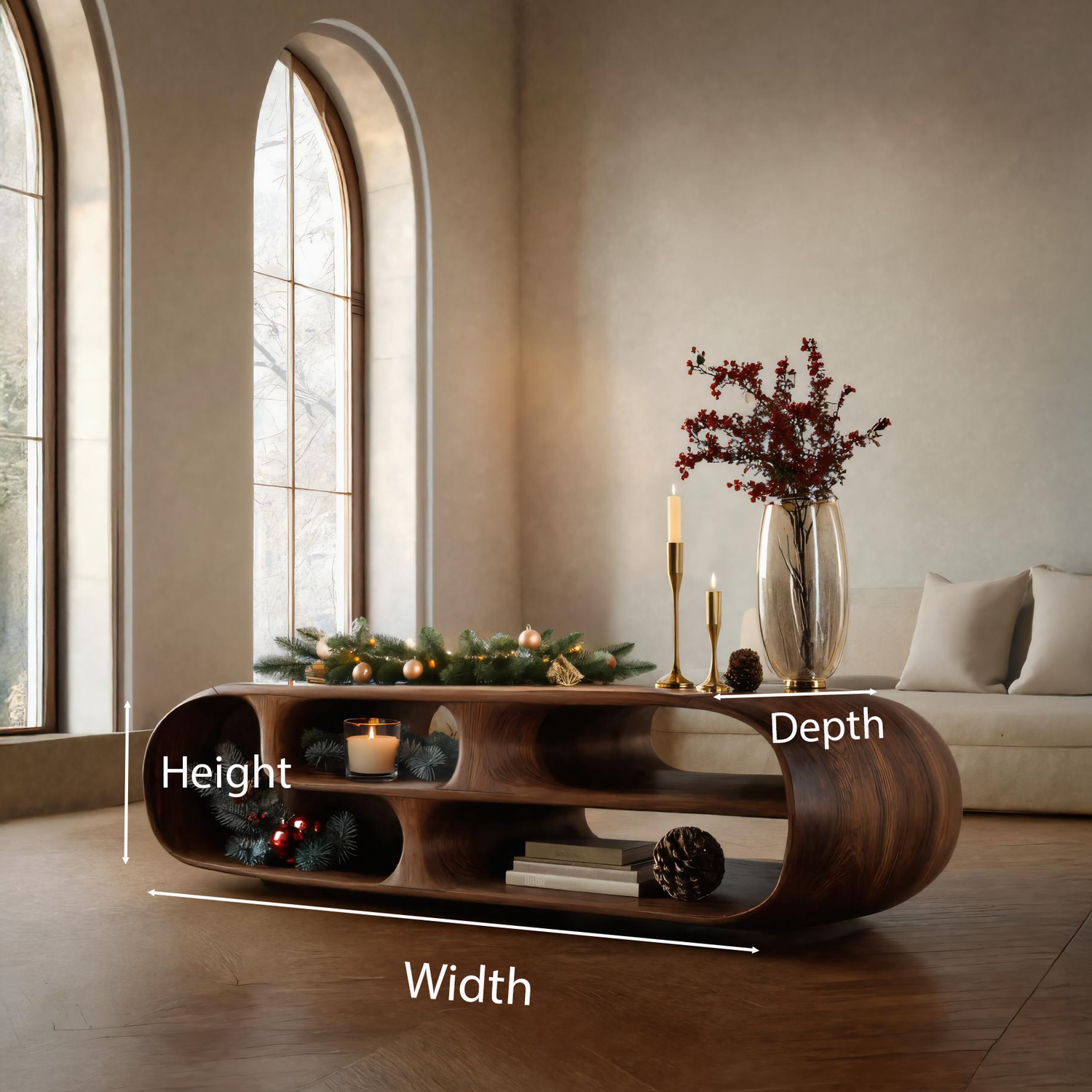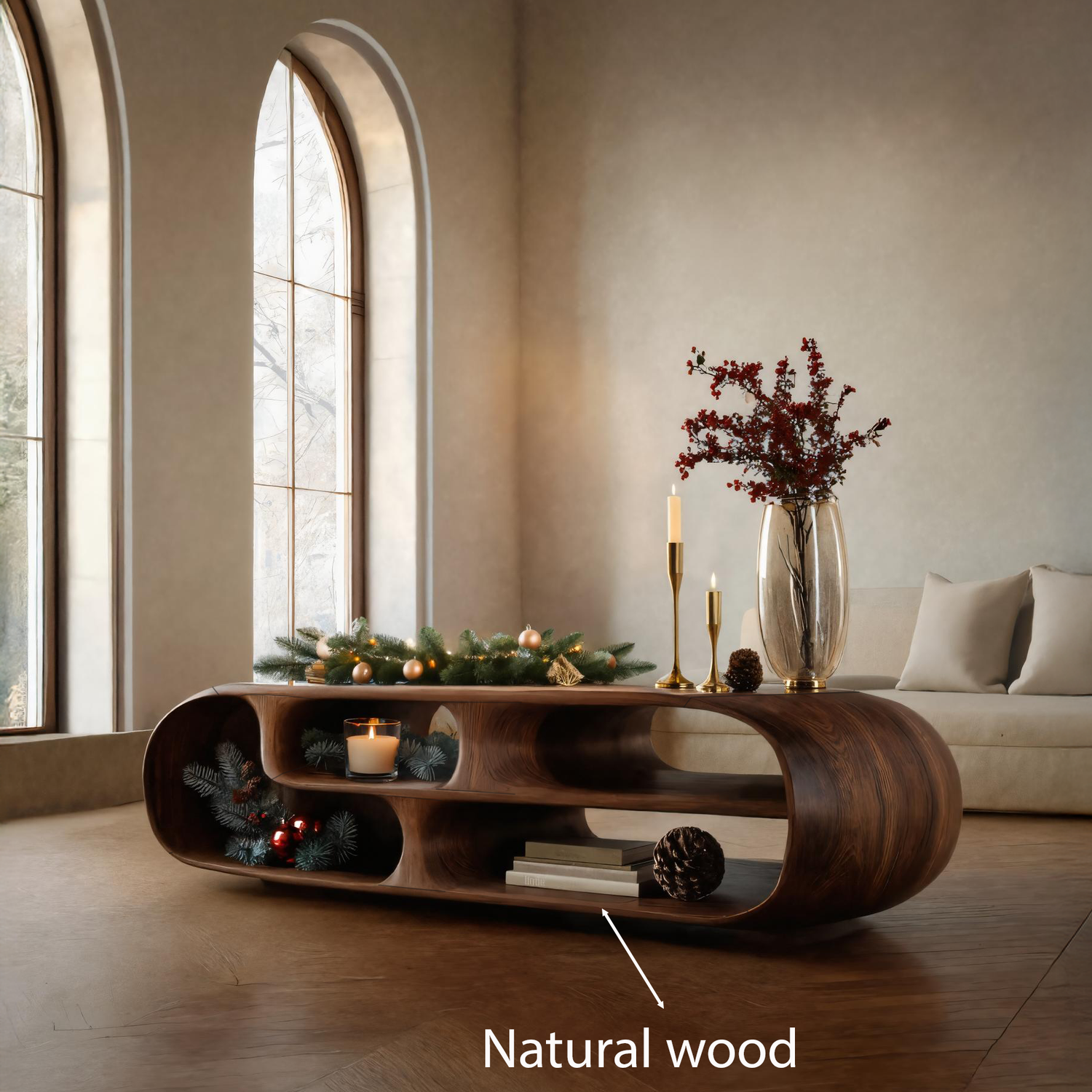 Celebrate sculptural simplicity and natural warmth with our Modern Curved Sideboard For Living Room Or Holiday Decor, a seamless blend of organic form and refined functionality. Its continuous curves and open compartments invite creative styling, offering an understated yet captivating focal point for any interior.