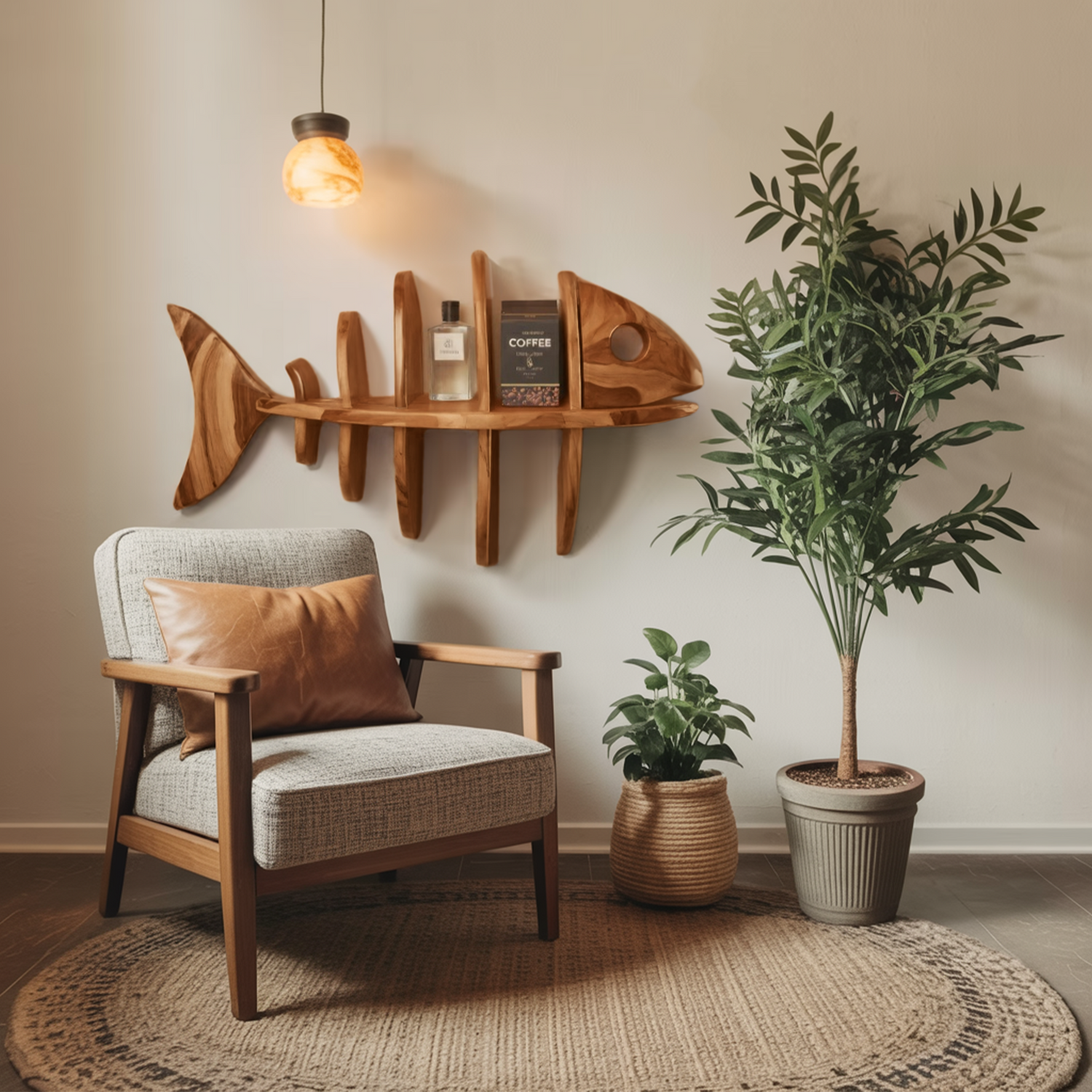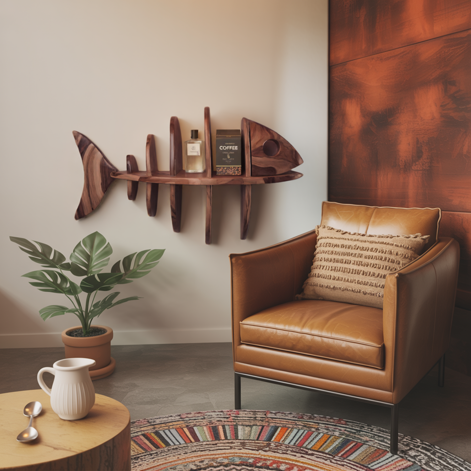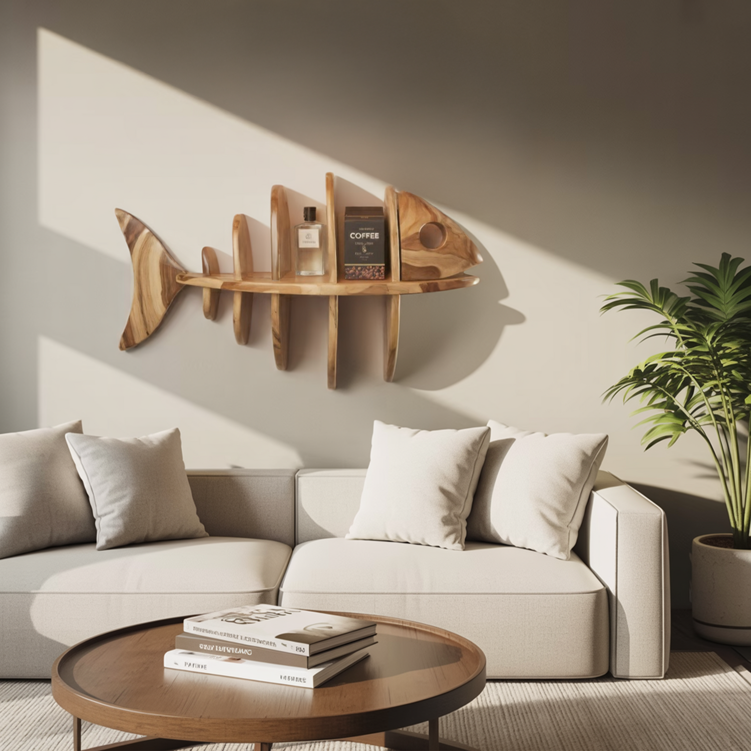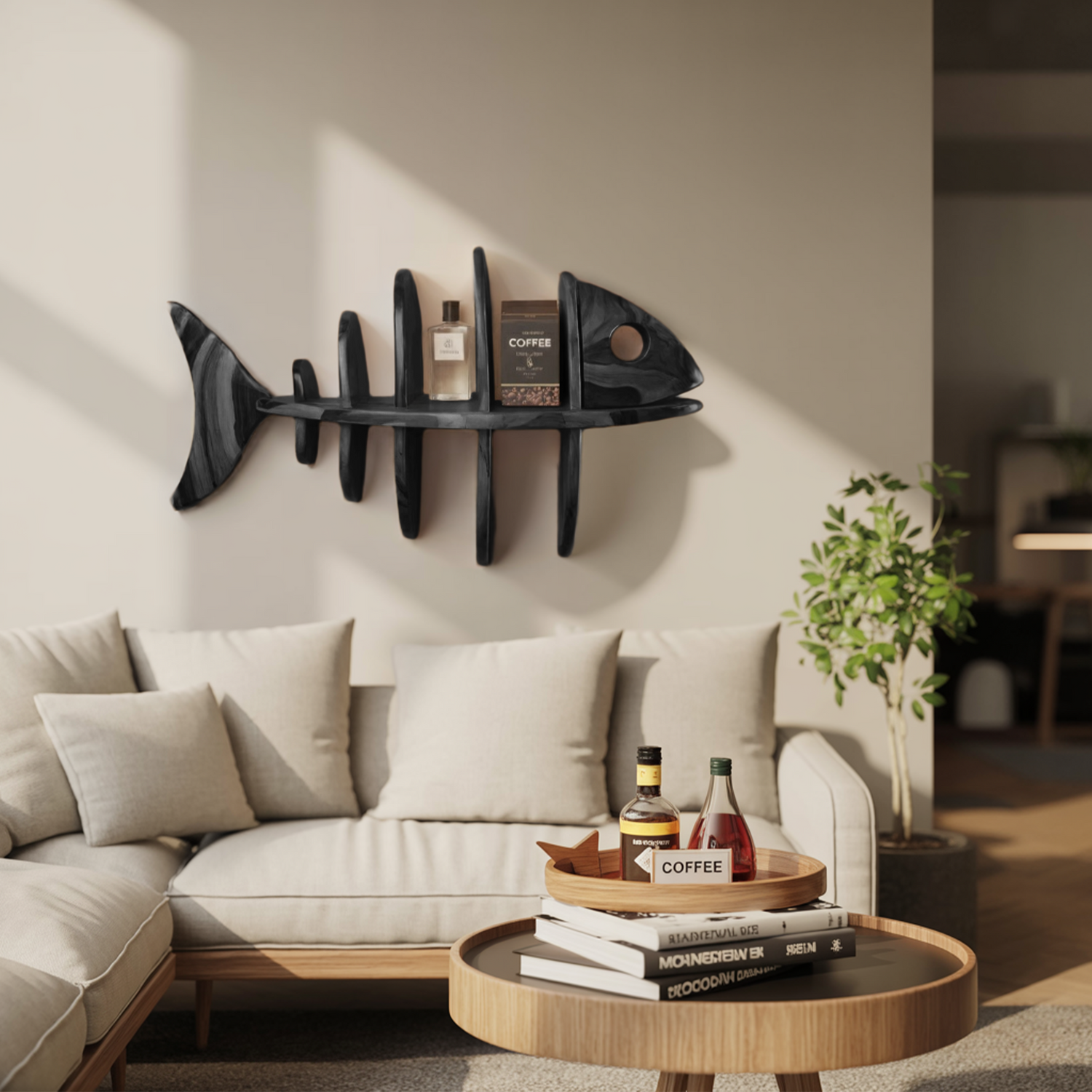 Bring coastal charm and clever storage to your walls with our Modern Fishbone Wall Shelf for Bathroom, Kitchen and Beach House, where playful form and functional display unite to create a delightful nautical accent.
