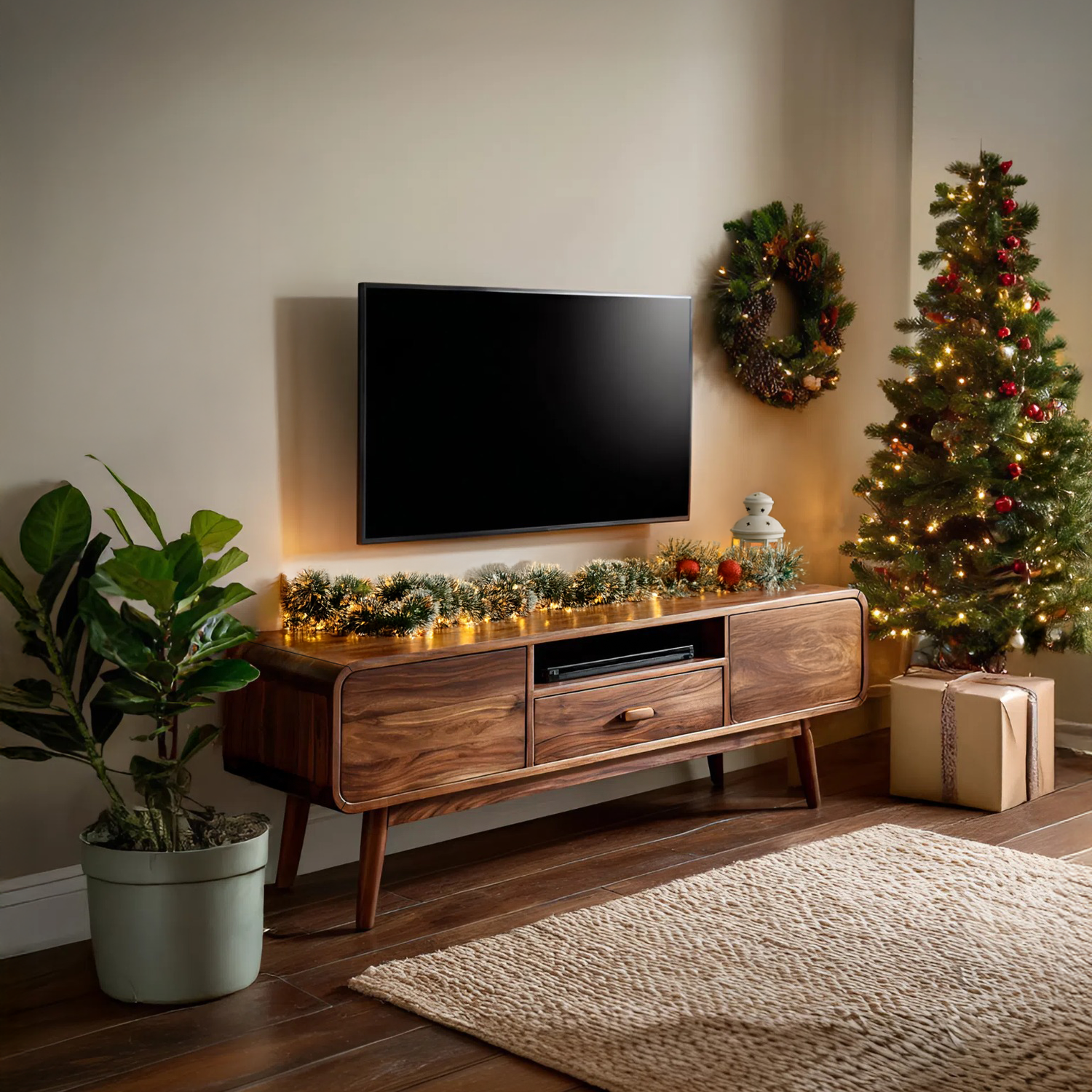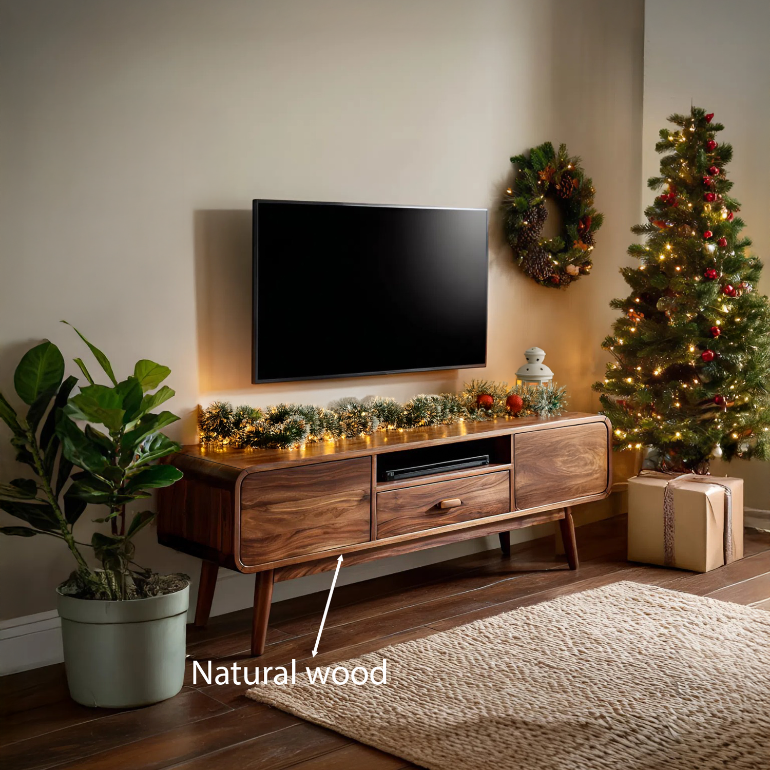 Bring warmth and sophistication to your festive living space with the Modern Floating TV Console With Rounded Edge For Holiday, a refined blend of sculptural design and practical function. This elegant piece enhances your holiday ambiance while maintaining a sleek, contemporary aesthetic that complements any interior style.